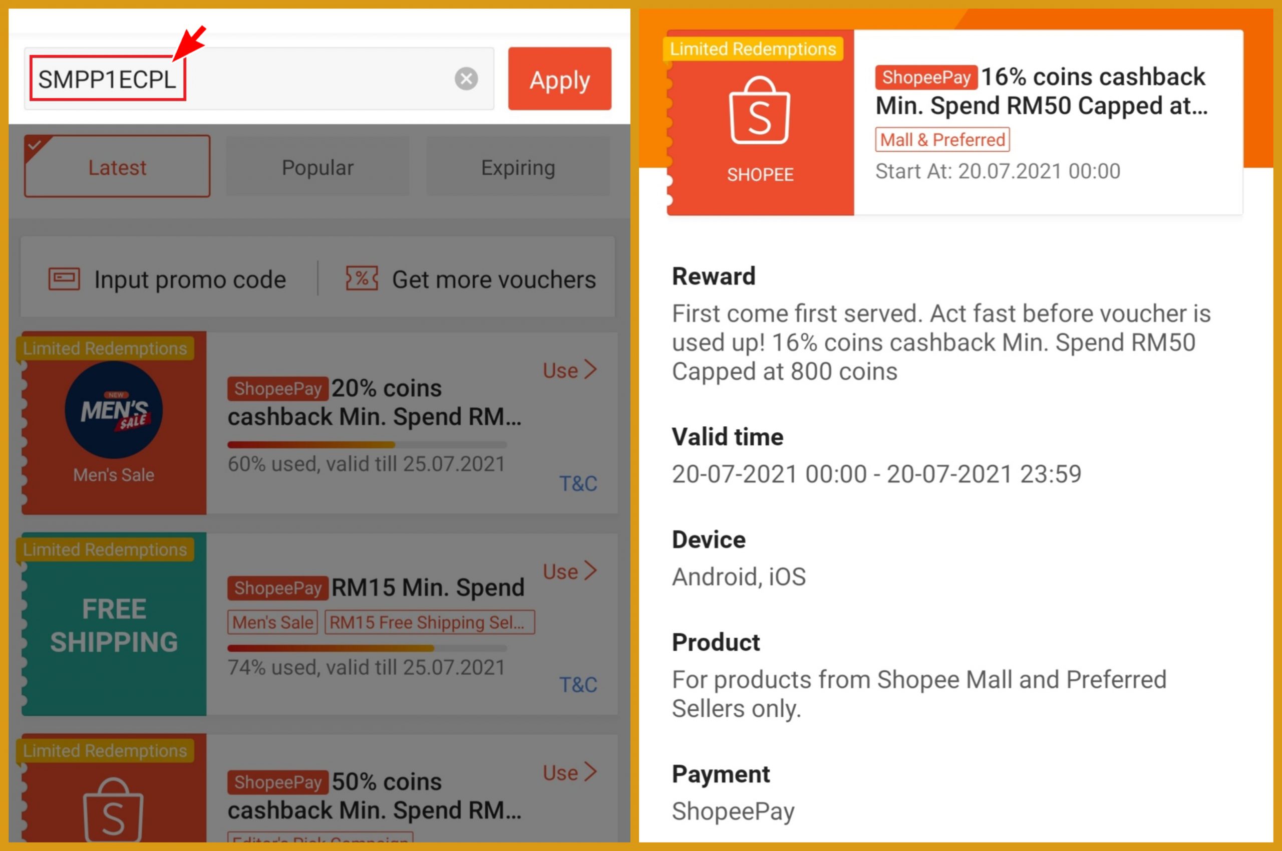 爱网购的朋友,绝对不可错过Shopee 推出任何一张优惠券啦!这些优惠券只限在7月20日当天使用!数量有限,先用先得!