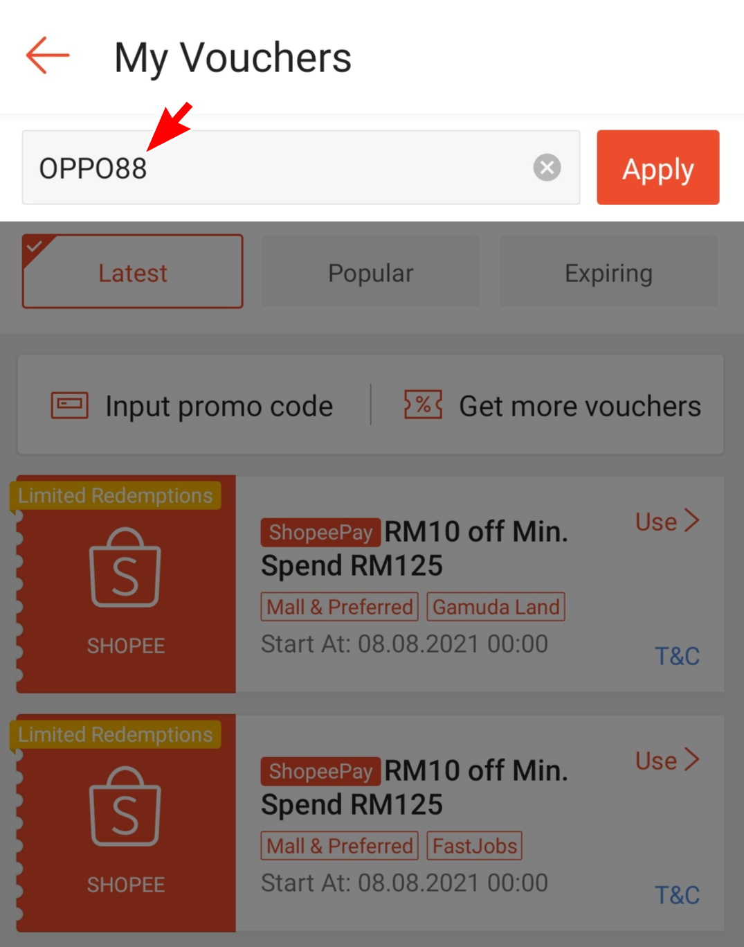 步骤2:点击“Input Promo Code”后在空格中输入「Promo Code」就可以了。