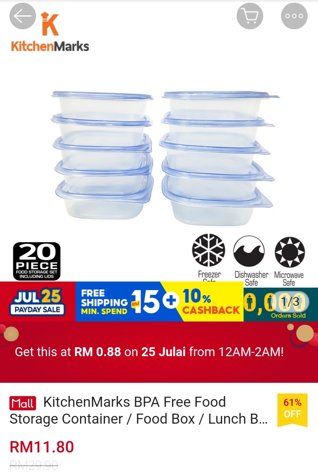 ▪ KitchenMarks BPA Free Food Storage Container / Food Box / Lunch Box with Lid/ Tupperware (20 Pcs/10 Container) – RM29.90 RM0.88