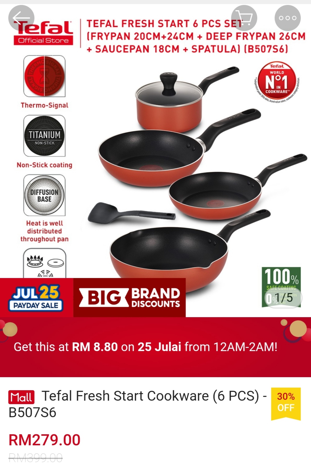 ▪ Tefal Fresh Start Cookware (6 PCS) – B507S6 – RM399 RM8.80