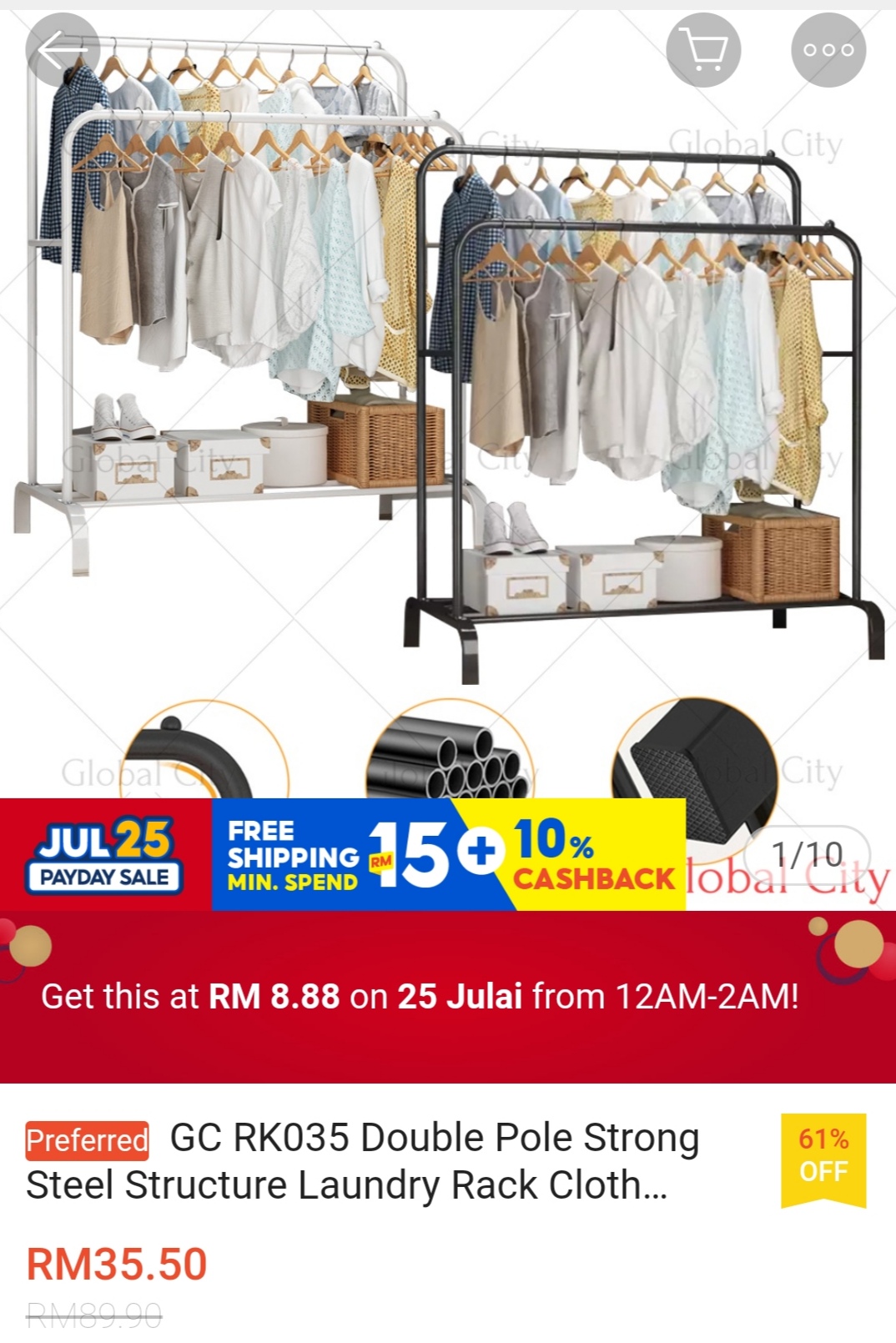 ▪ Double Pole Strong Steel Structure Laundry Rack Cloth Organizer Cloth Hanger – RM89.90 RM8.88