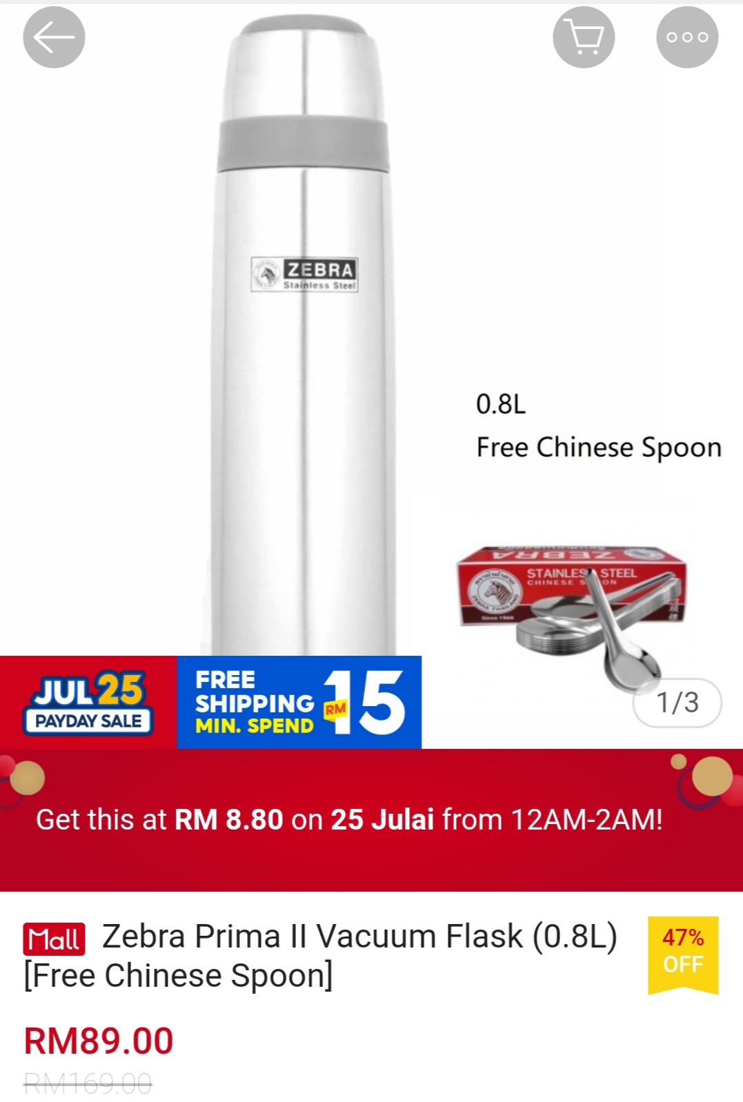▪ Zebra Prima II Vacuum Flask (0.8L) [Free Chinese Spoon] – RM169 RM8.80