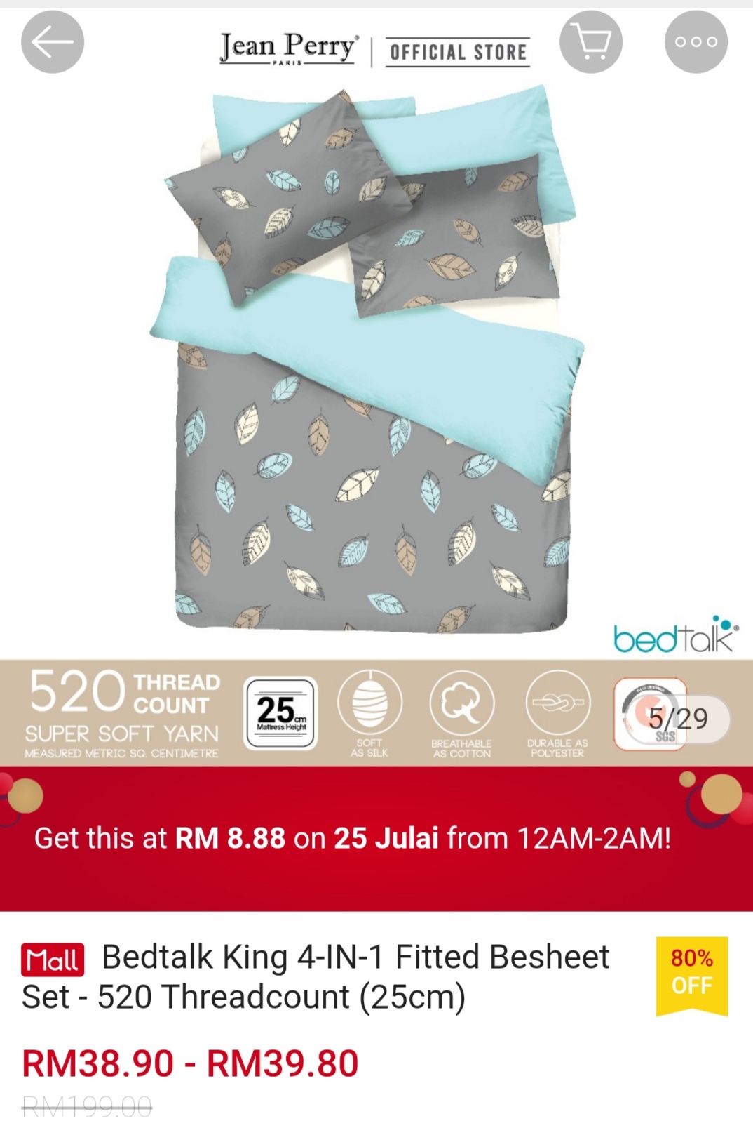▪ Bedtalk King 4-IN-1 Fitted Besheet Set – 520 Threadcount (25cm) – RM199 RM8.88