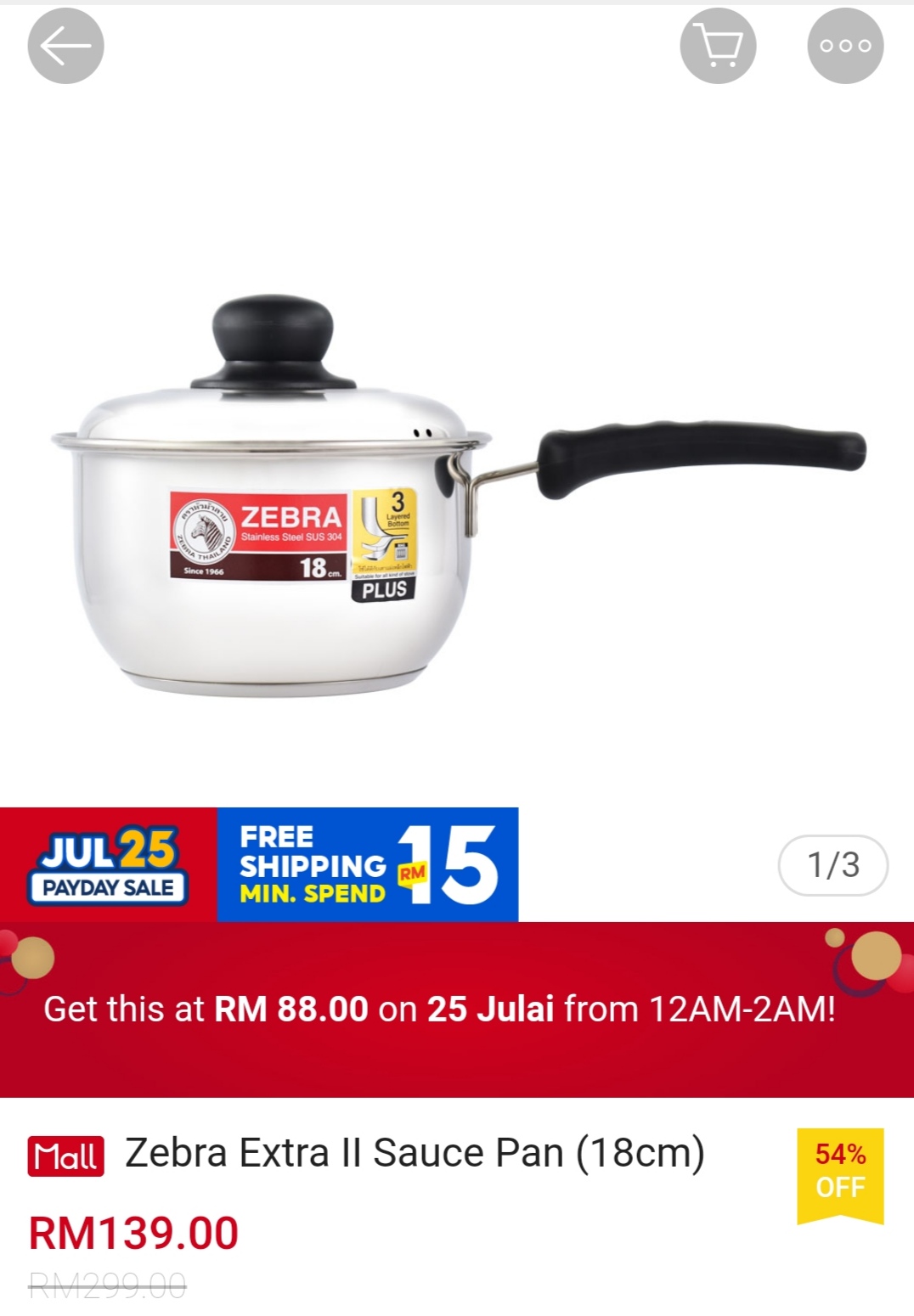 ▪ Zebra Extra II Sauce Pan (18cm) – RM299 RM88