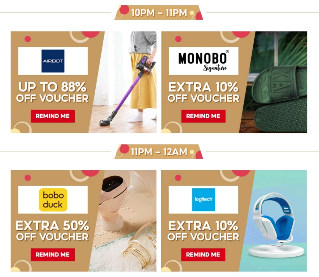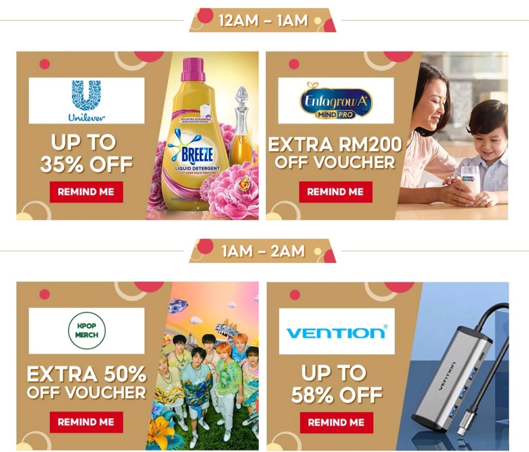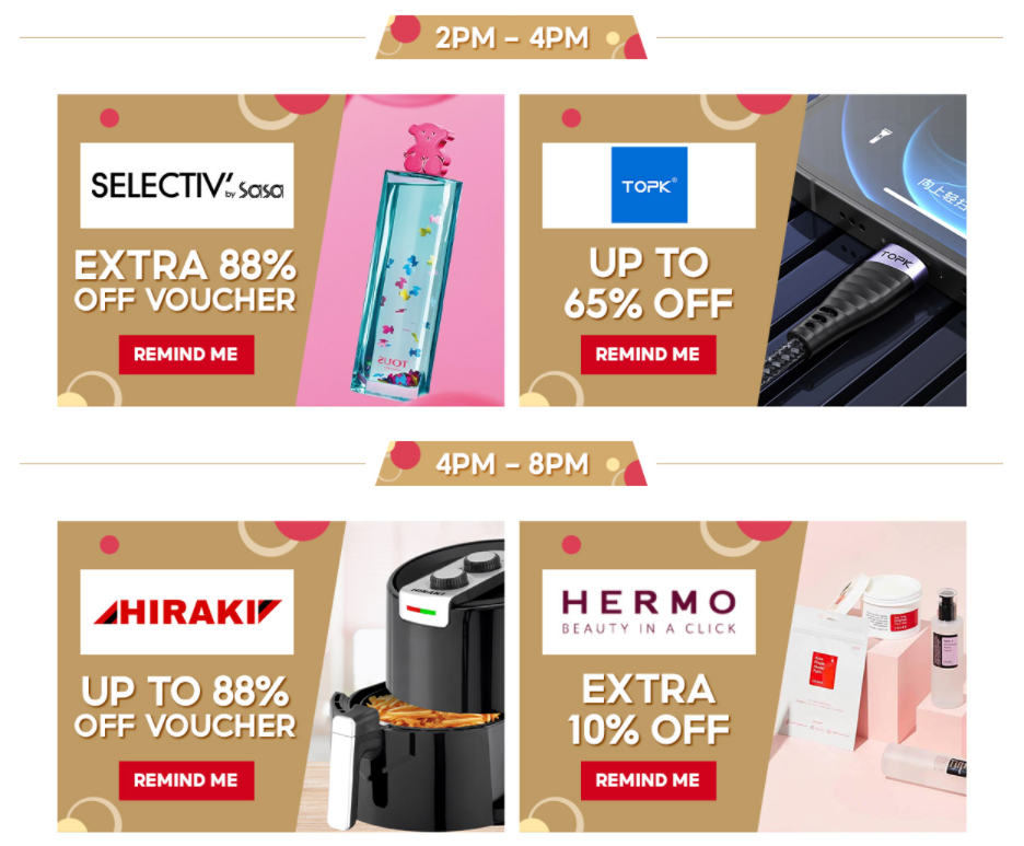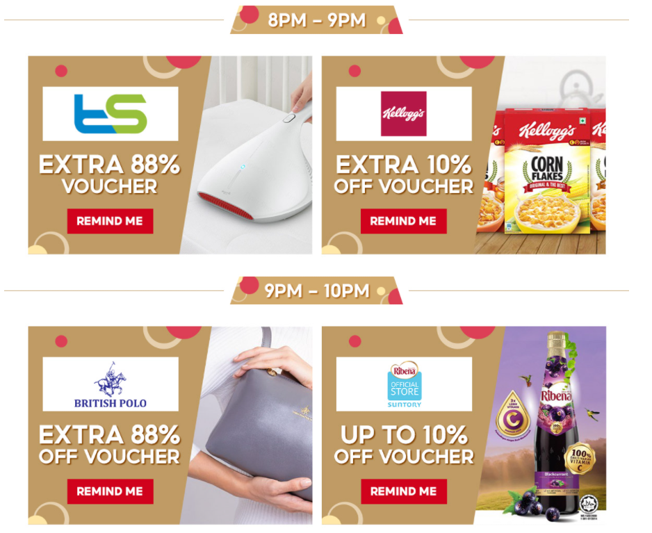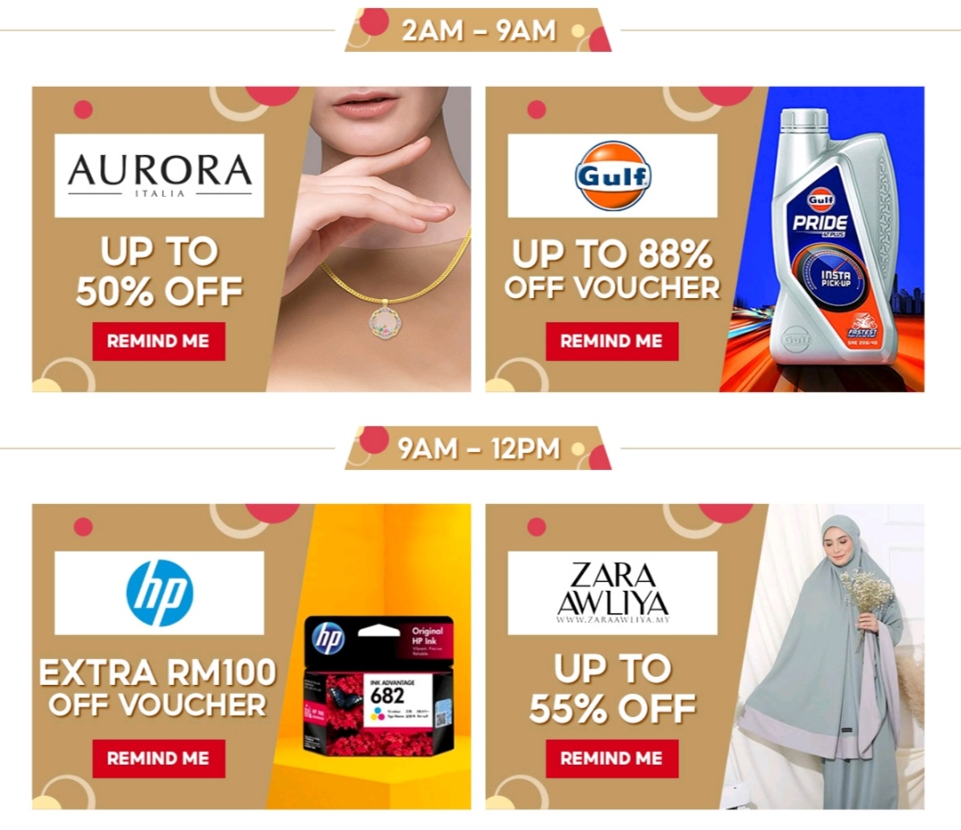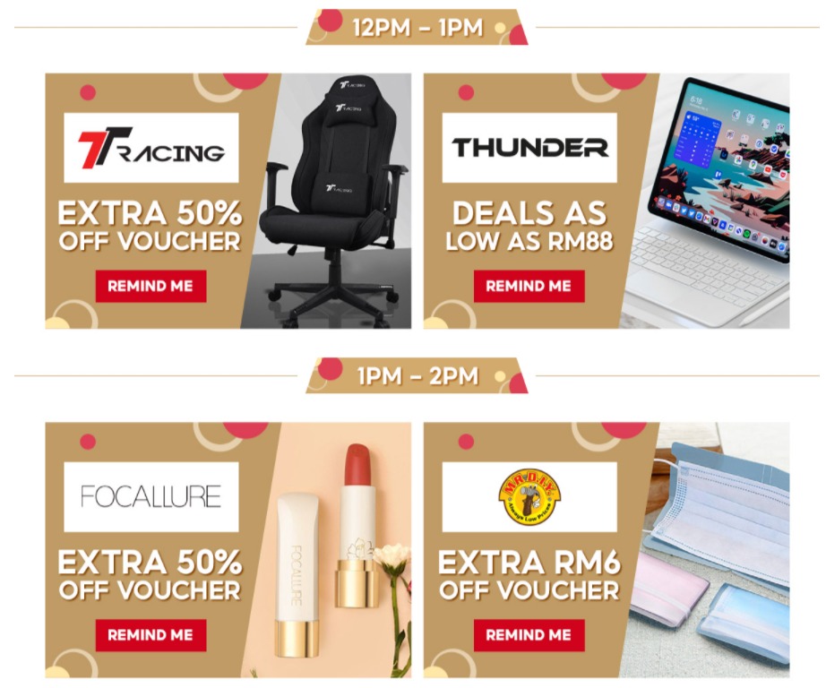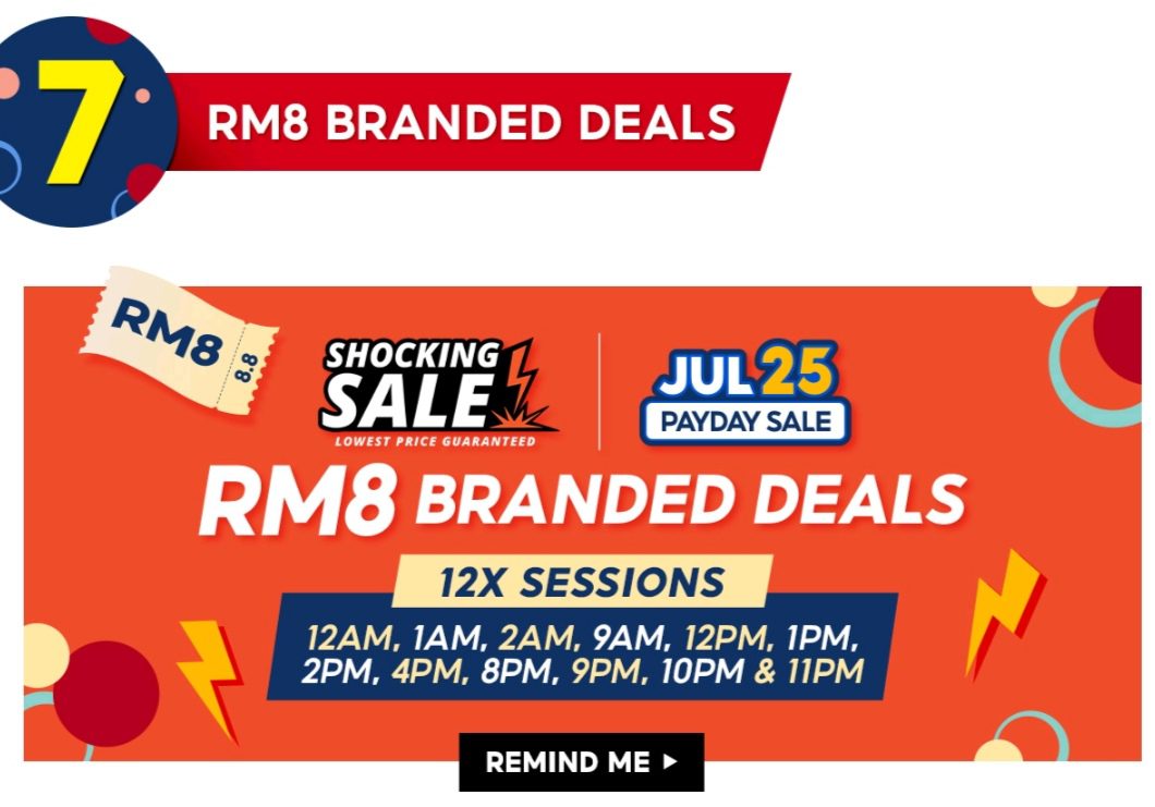 i)每个时段推出RM8 品牌商品优惠!记得点击“Remind Me”获得通知!