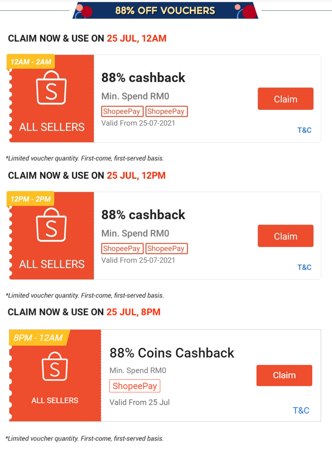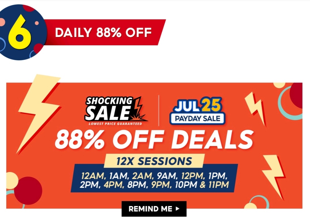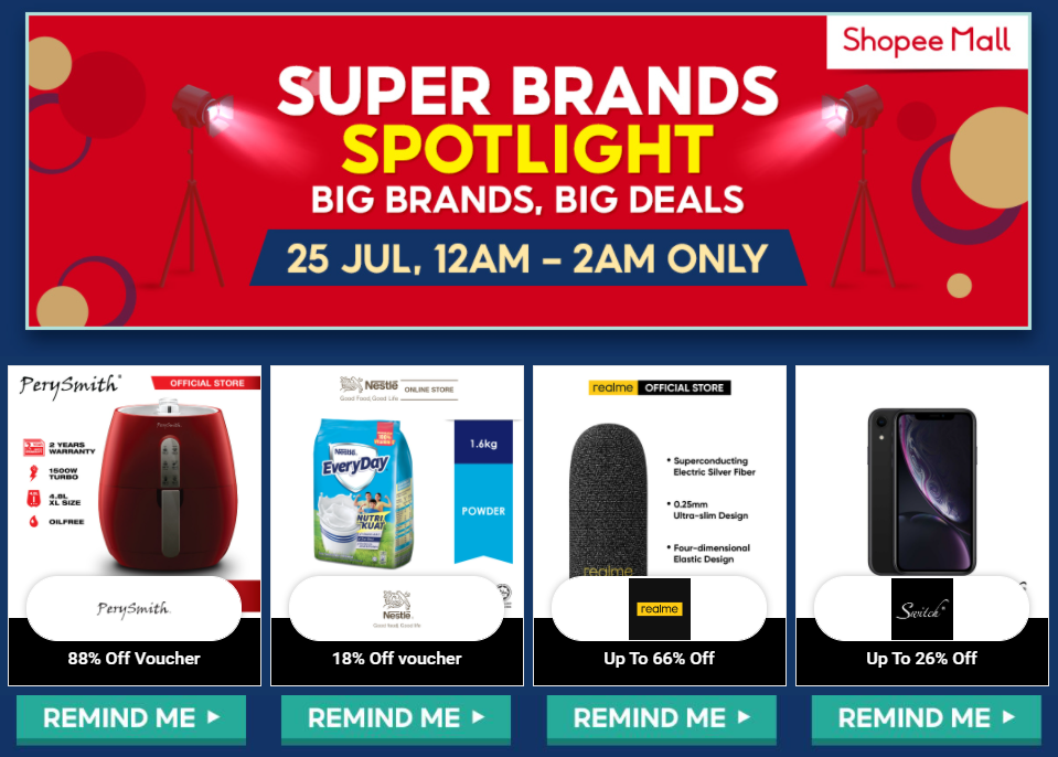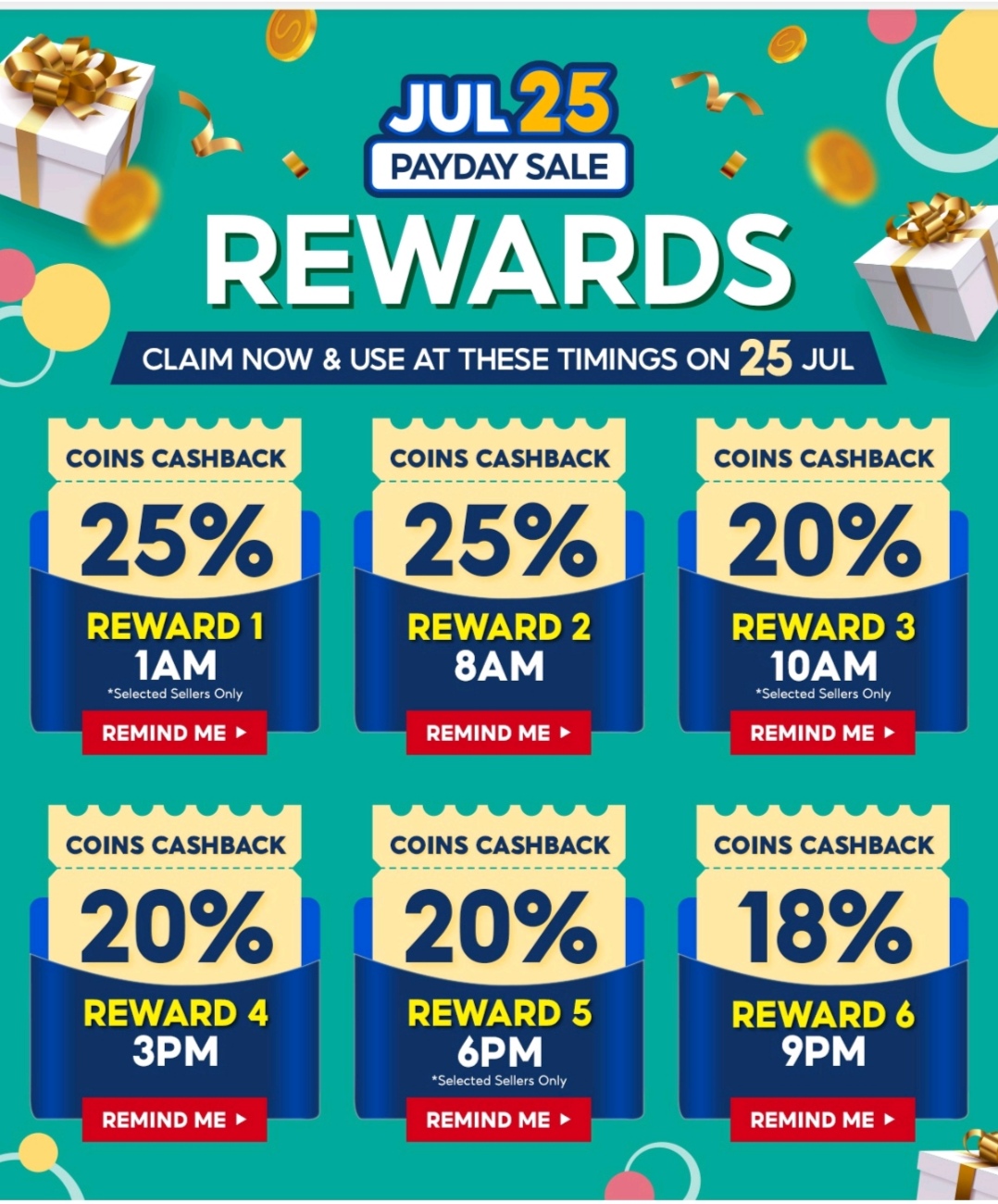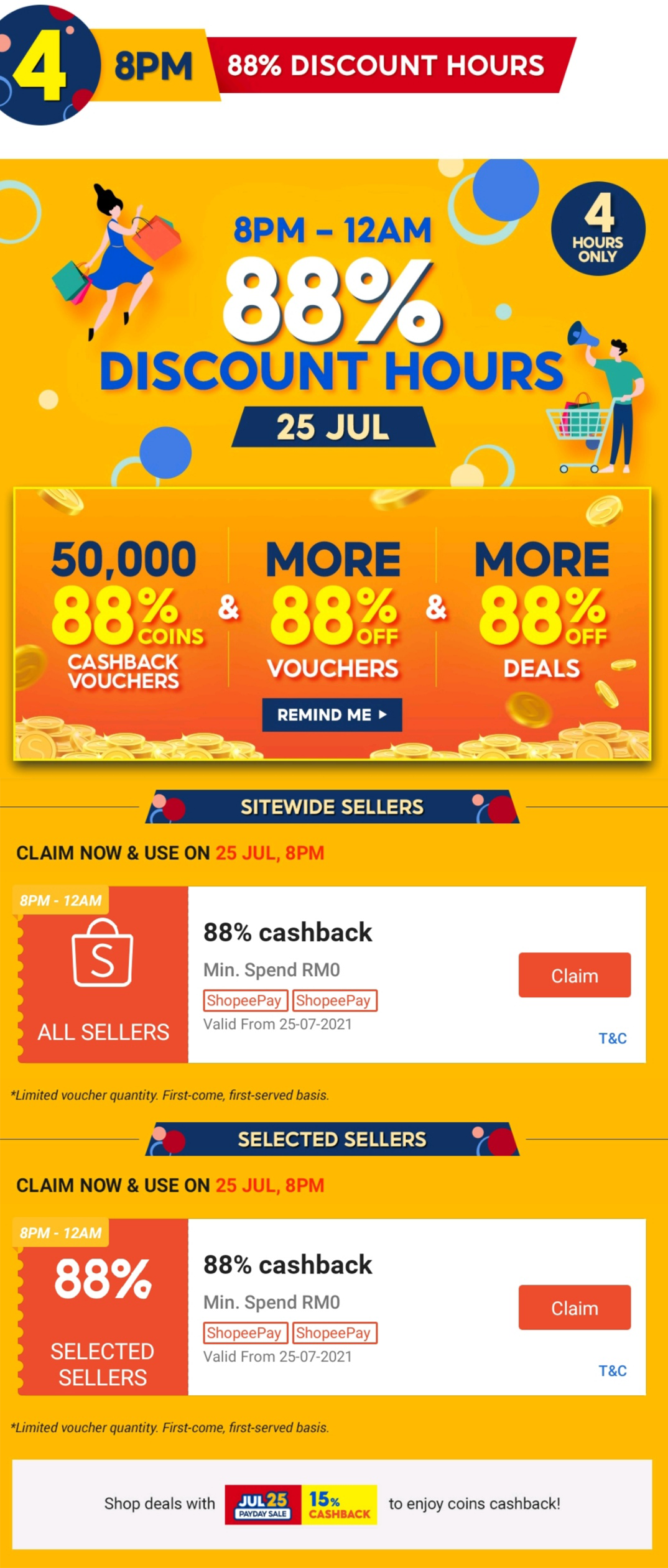 ii)7月25日当天每个时段推出现金回扣券!高达25%回扣!记得点击“Remind Me”获得通知!