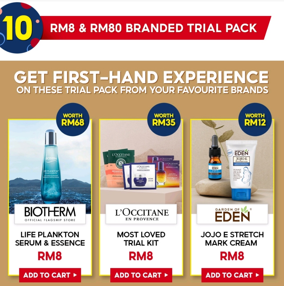 品牌护肤品试用装,如:Biotherm、L’occitane、One Thing等!最低只需RM8!