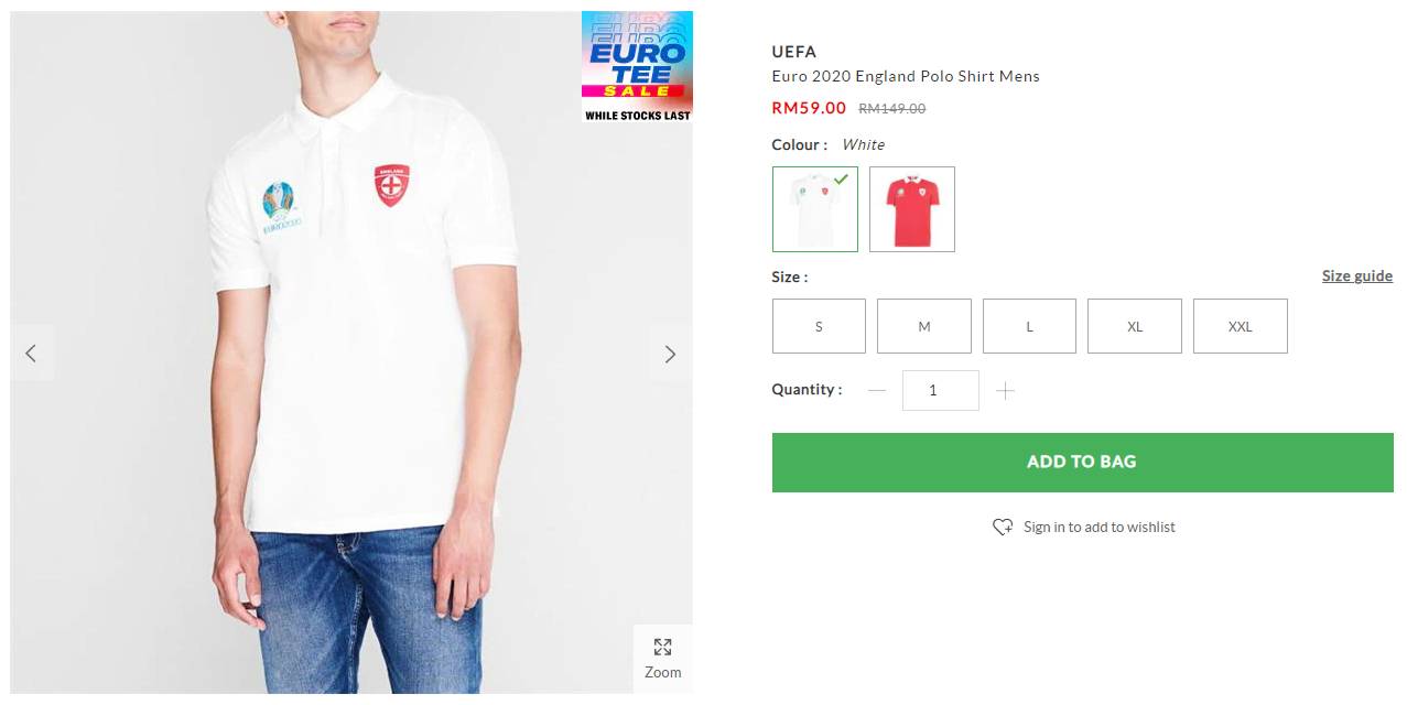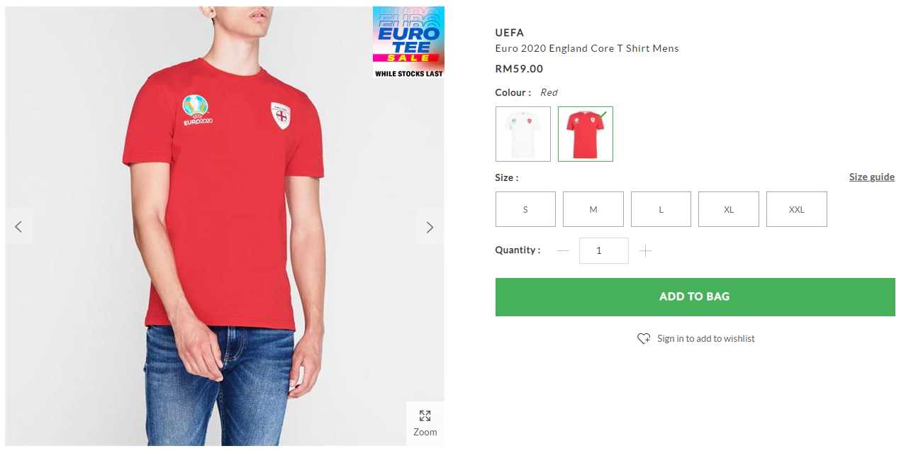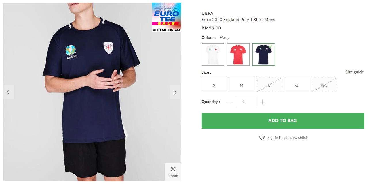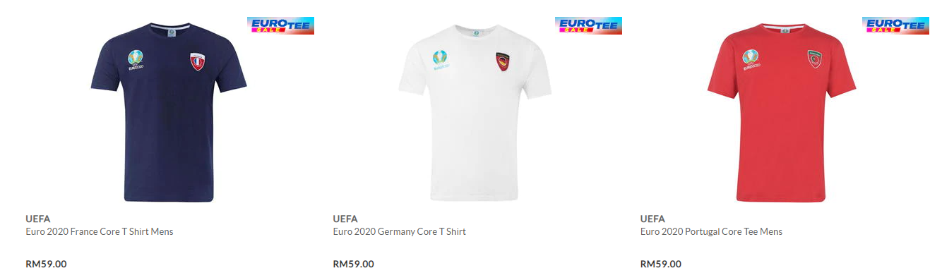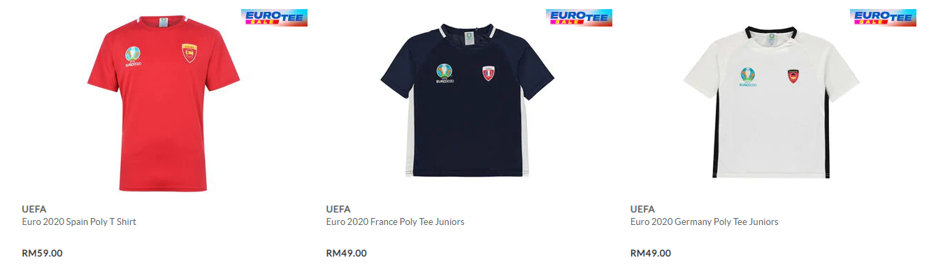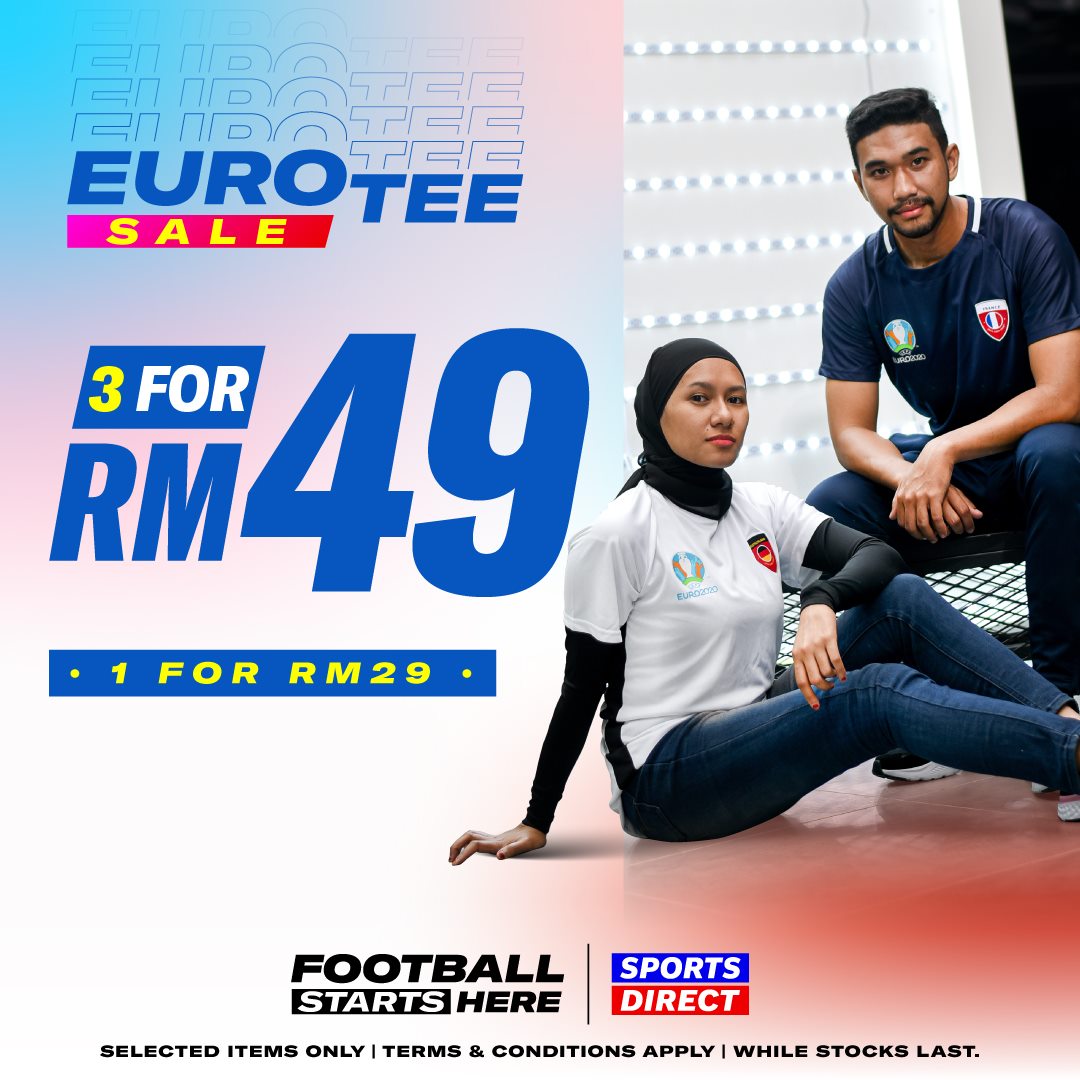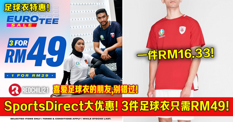 喜爱足球衣服的朋友,有好消息告诉你!如今SportsDirect 推出Euro Tee 大促销!3件只需RM49!