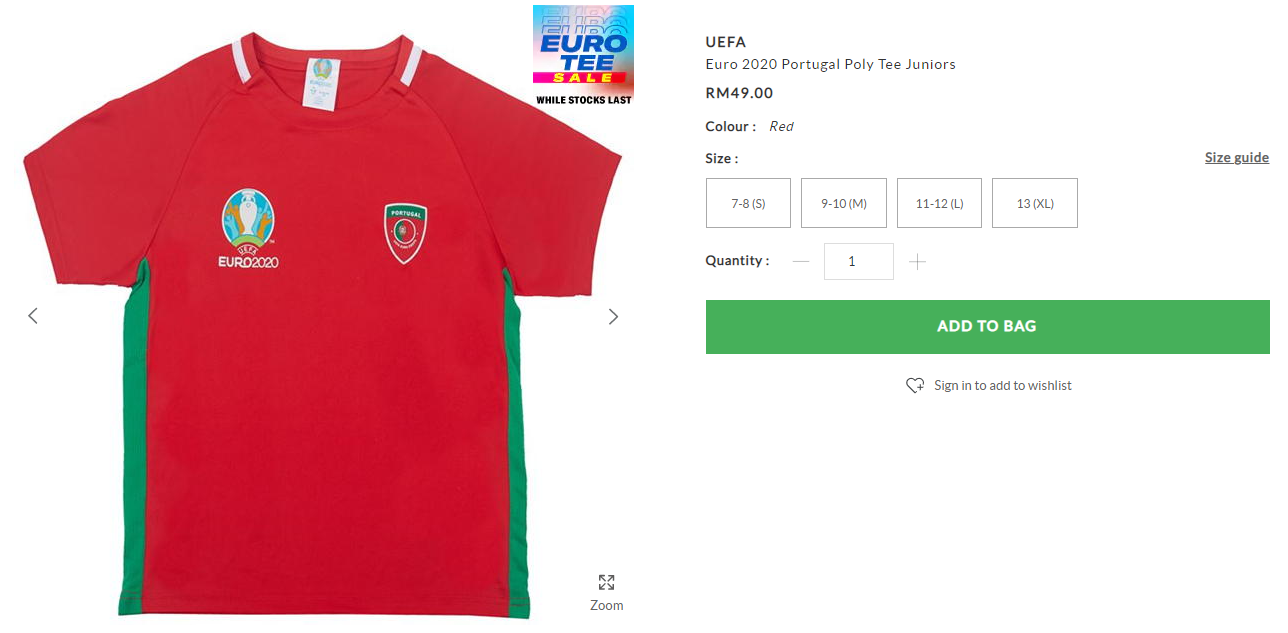 ▼ Euro 2020 Portugal Poly Tee Juniors – 原价RM49;购买【点击这里】