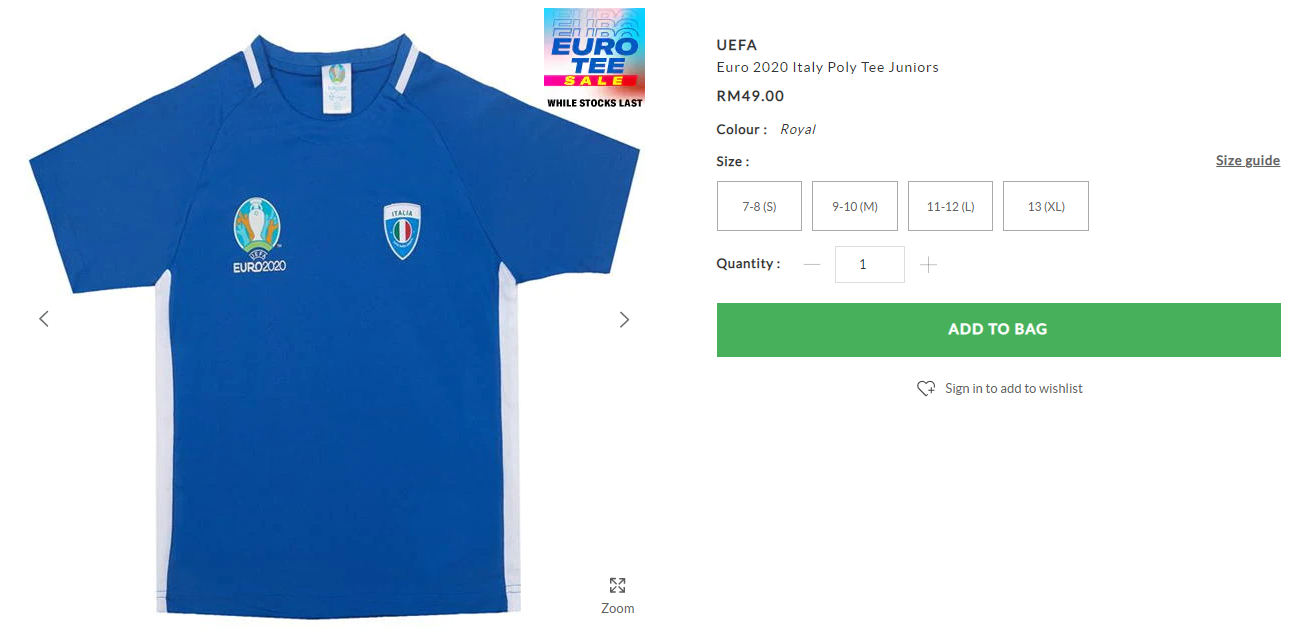 ▼ Euro 2020 Italy Poly Tee Juniors – 原价RM49;购买【点击这里】