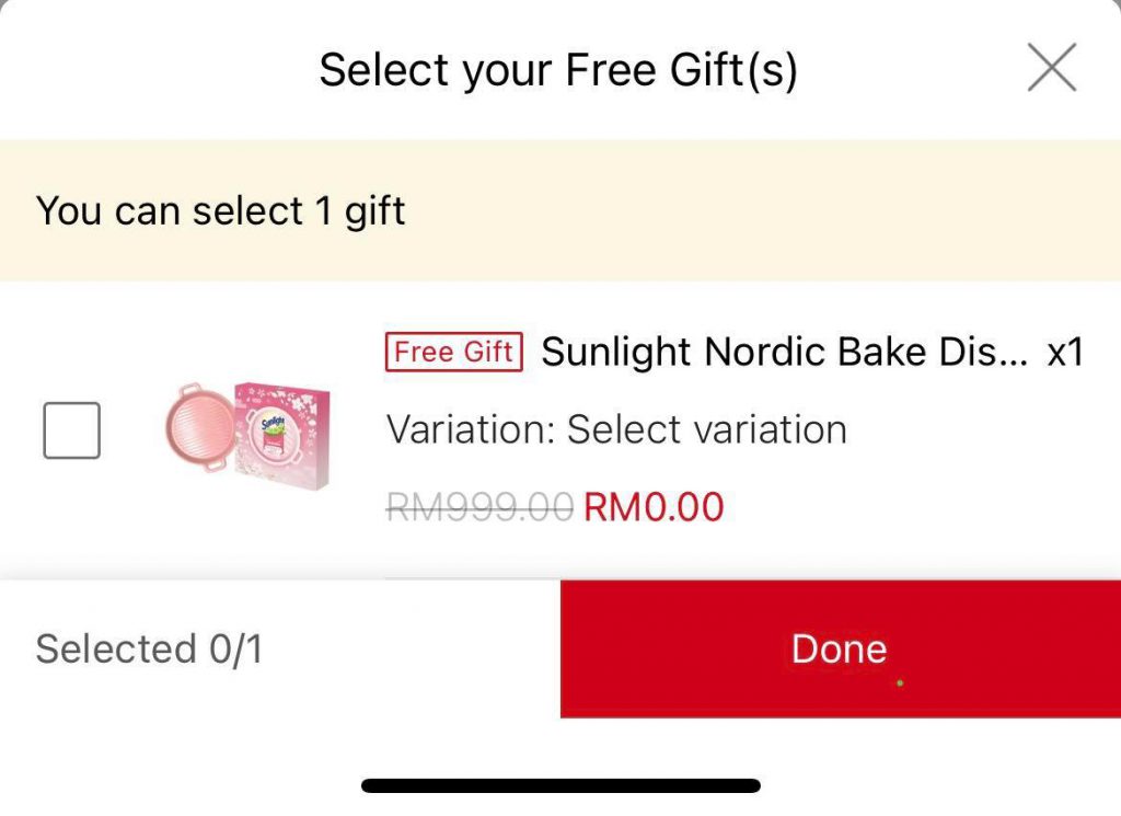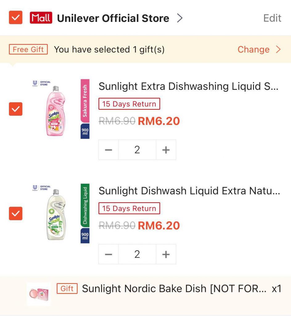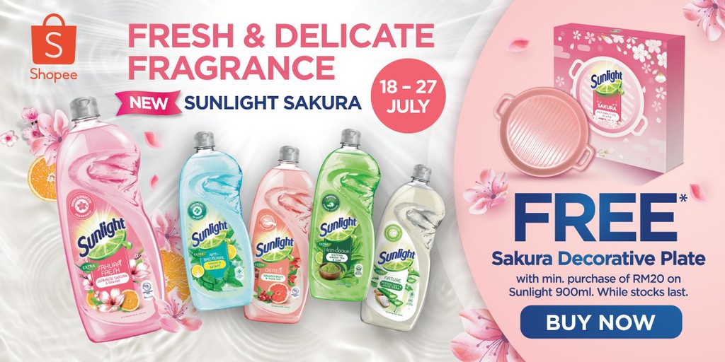 促销条件:只需购买价值RM20或以上的 Sunlight(900ml)洗碗液就可获得赠品