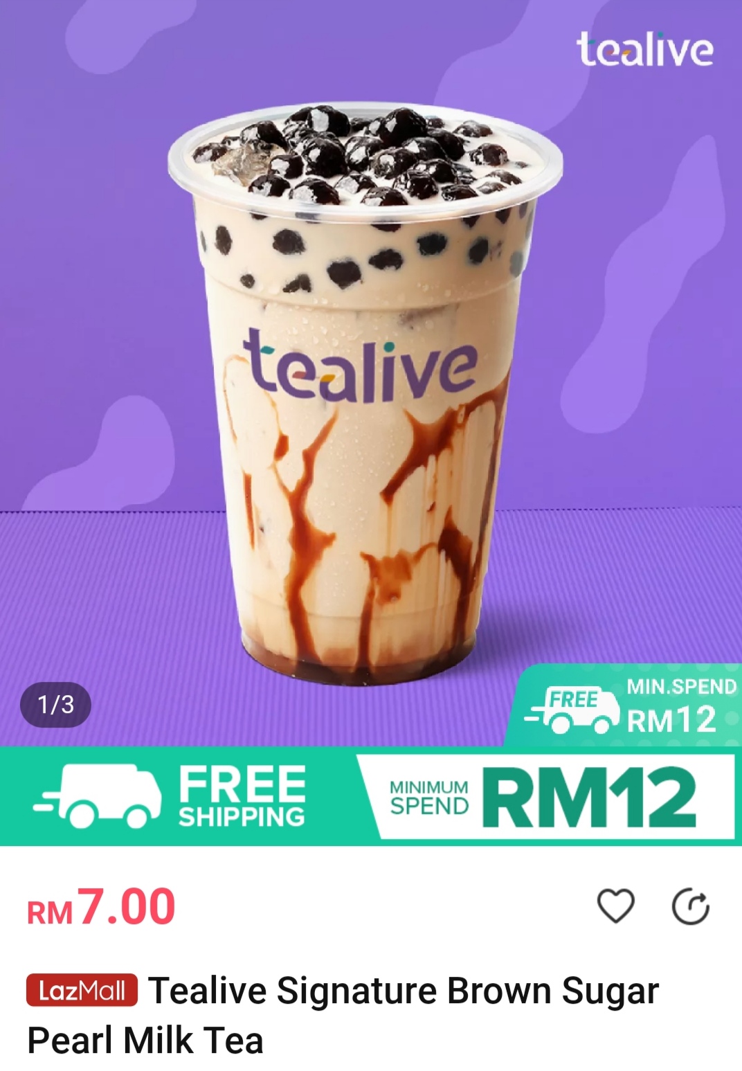 又可以买到便宜的Tealive 饮料啦!为了配合【7.7】的到来,Lazada 与Tealive 联合推出50%折扣优惠!购买3杯Tealive 饮料只需RM11,平均一杯只需RM3.67!