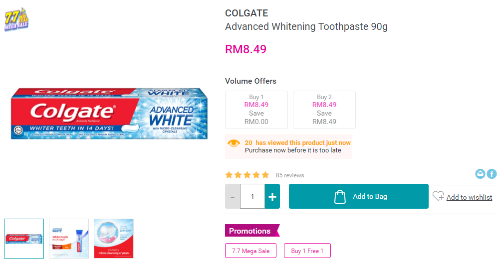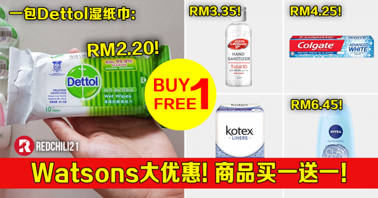 为了配合7.7 网购节的到来,大马Watsons 推出商品可享有买一送一大优惠!Colgate 牙膏、Dettol 湿纸巾、搓手液等等统统买一送一!