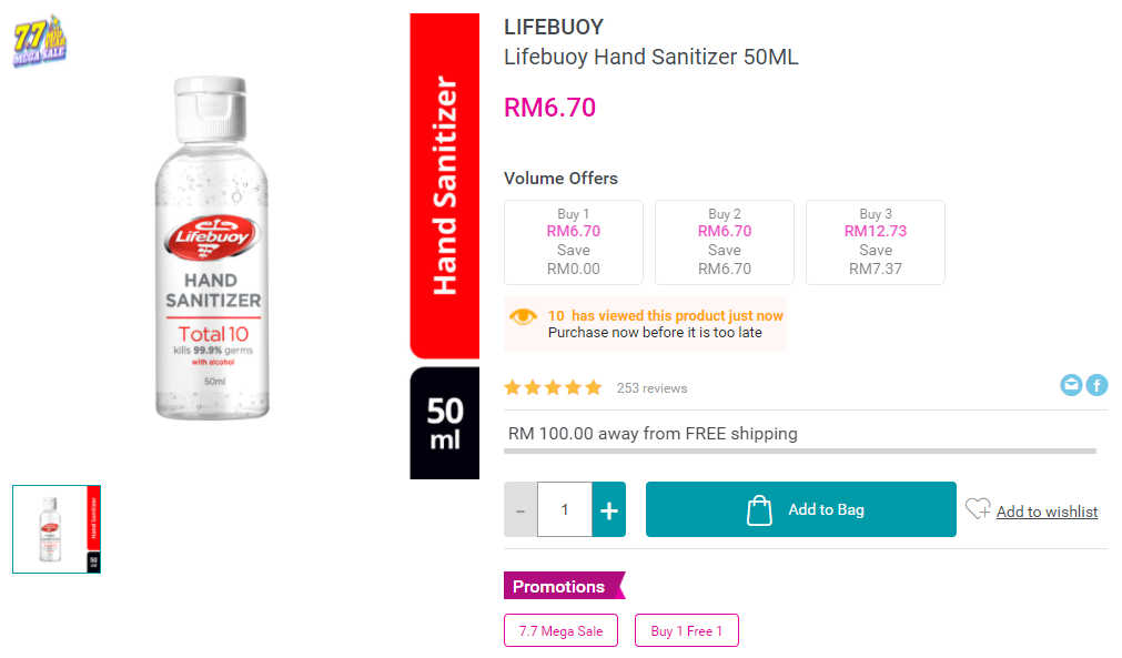 - Lifebuoy Hand Sanitizer 50ML 购买:【点击这里】