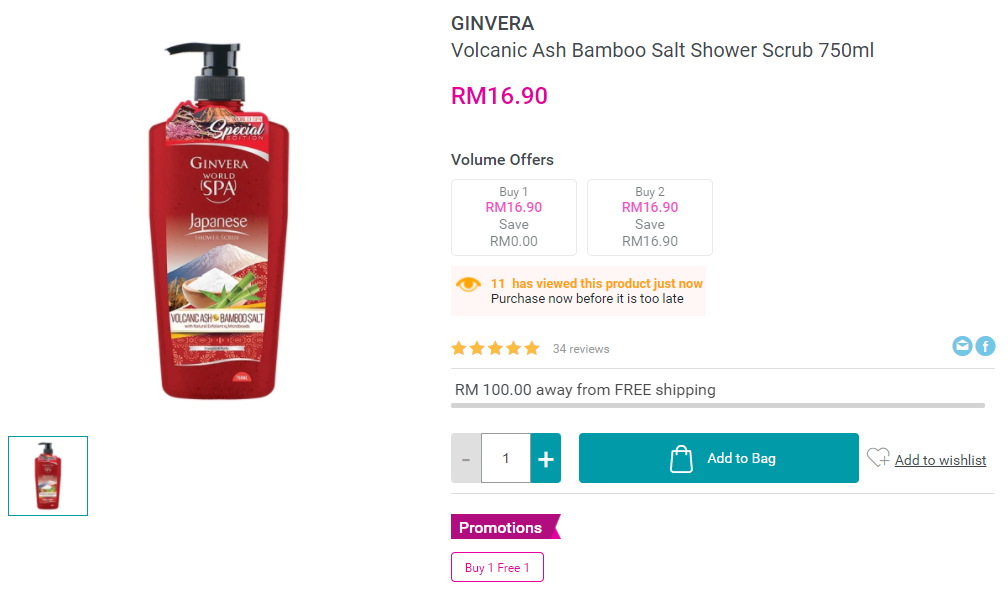 ▼ Promotion 10:买一送一(2瓶RM34.29;一瓶RM17.15)