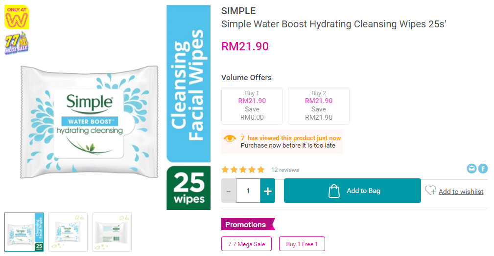 - Simple Water Boost Hydrating Cleansing Wipes 25s’ 购买【点击这里】