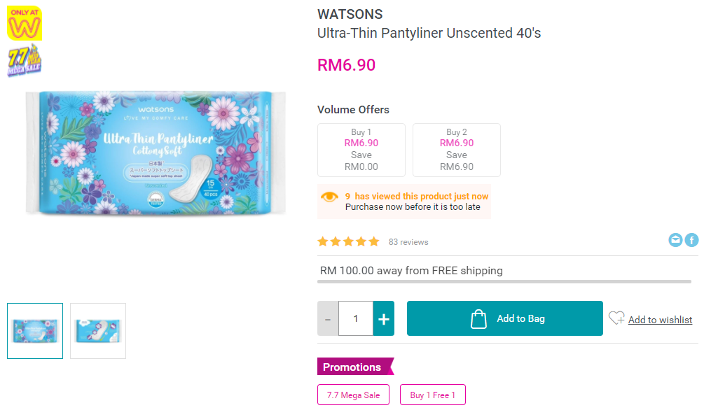 - WATSONS Ultra-Thin Pantyliner Floral Scented 40’s 购买【点击这里】