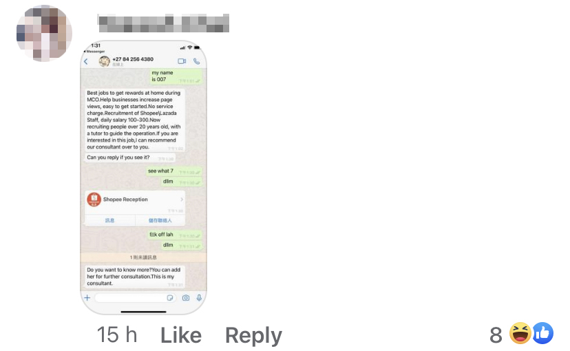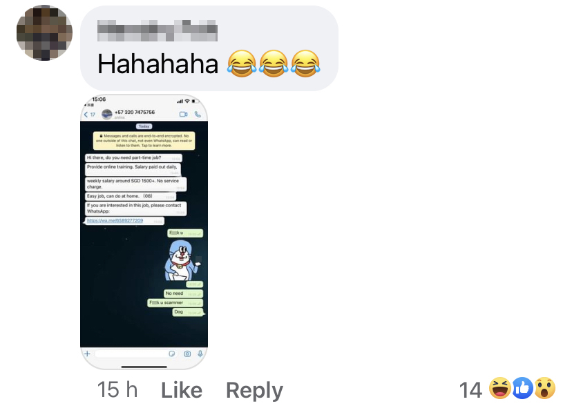 简短又不失礼貌的回复让诈骗分子哑口无言,直接自闭了!该帖子在短短不到一天内就累计超过6,200次分享,你还不赶快学起来?!哈哈哈!