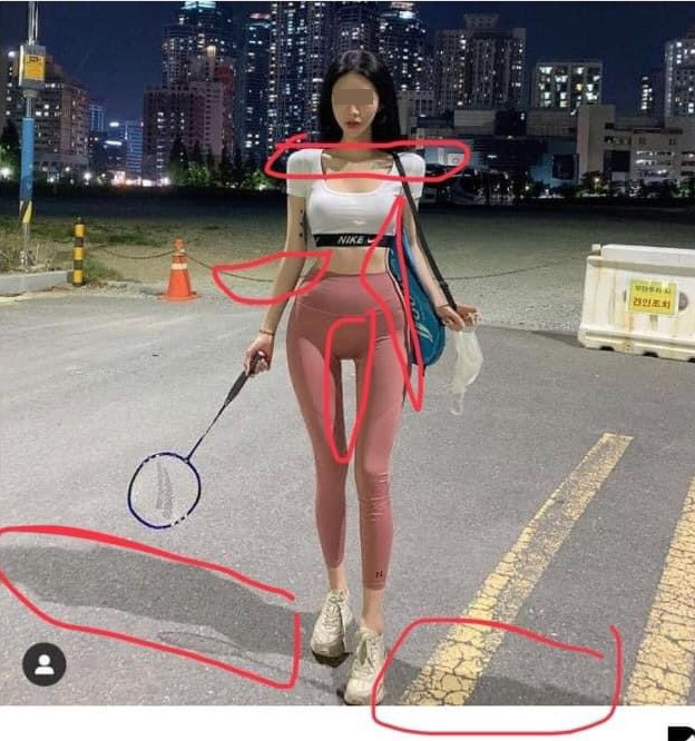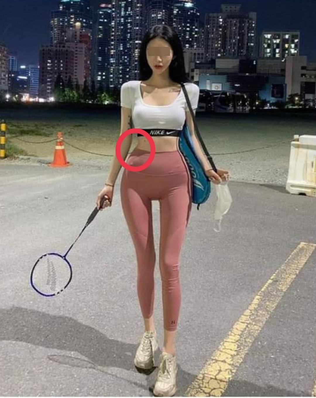 ▼ 照片中的女子穿着一身特别凸显身材的运动装,纤细的手臂加上细长的美腿,最匪夷所思的就是上半身的线条!这大概在现实生活中很难看到吧…