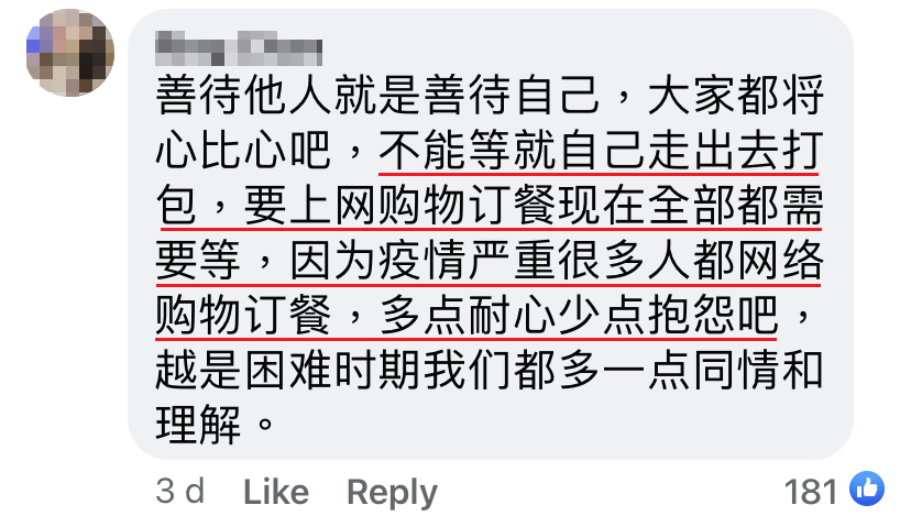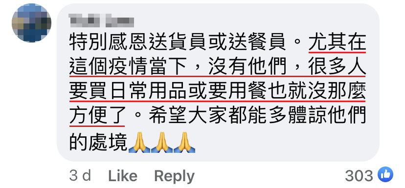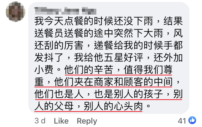 该名送餐员度过了这漫长的一天,他感到疲惫、心情复杂又很沮丧。这已经不是他第一次遇到恶意评论、诅咒和无理的顾客。但他一直提醒自己要感恩,因为疫情期间他还能有工作做。