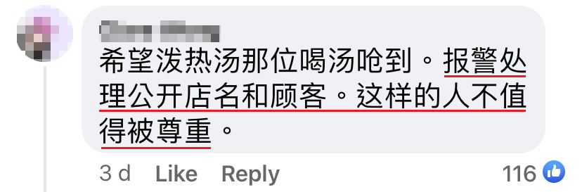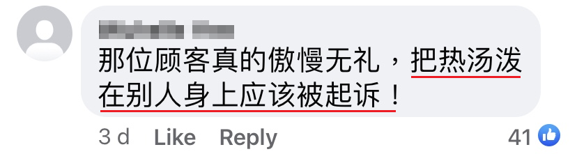 那位顾客把他的餐点包括一碗热汤,整个扔向送餐员。「So fxxking long better don’t deliver next time!(既然这么慢,下次干脆不用送来了!)」