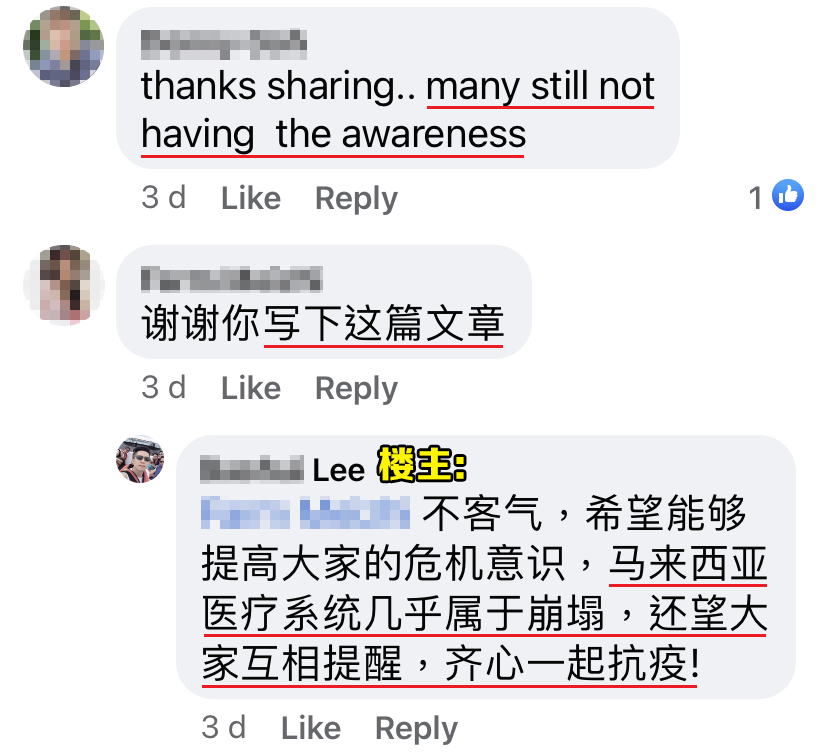 马来西亚每天都有5位数的单日确诊病例,试想想:我们的医疗体系还撑得住吗?然而至今仍有许多人并没有意识到这个危机,还抱着“自己不会那么衰”的心态来面对眼前的疫情。