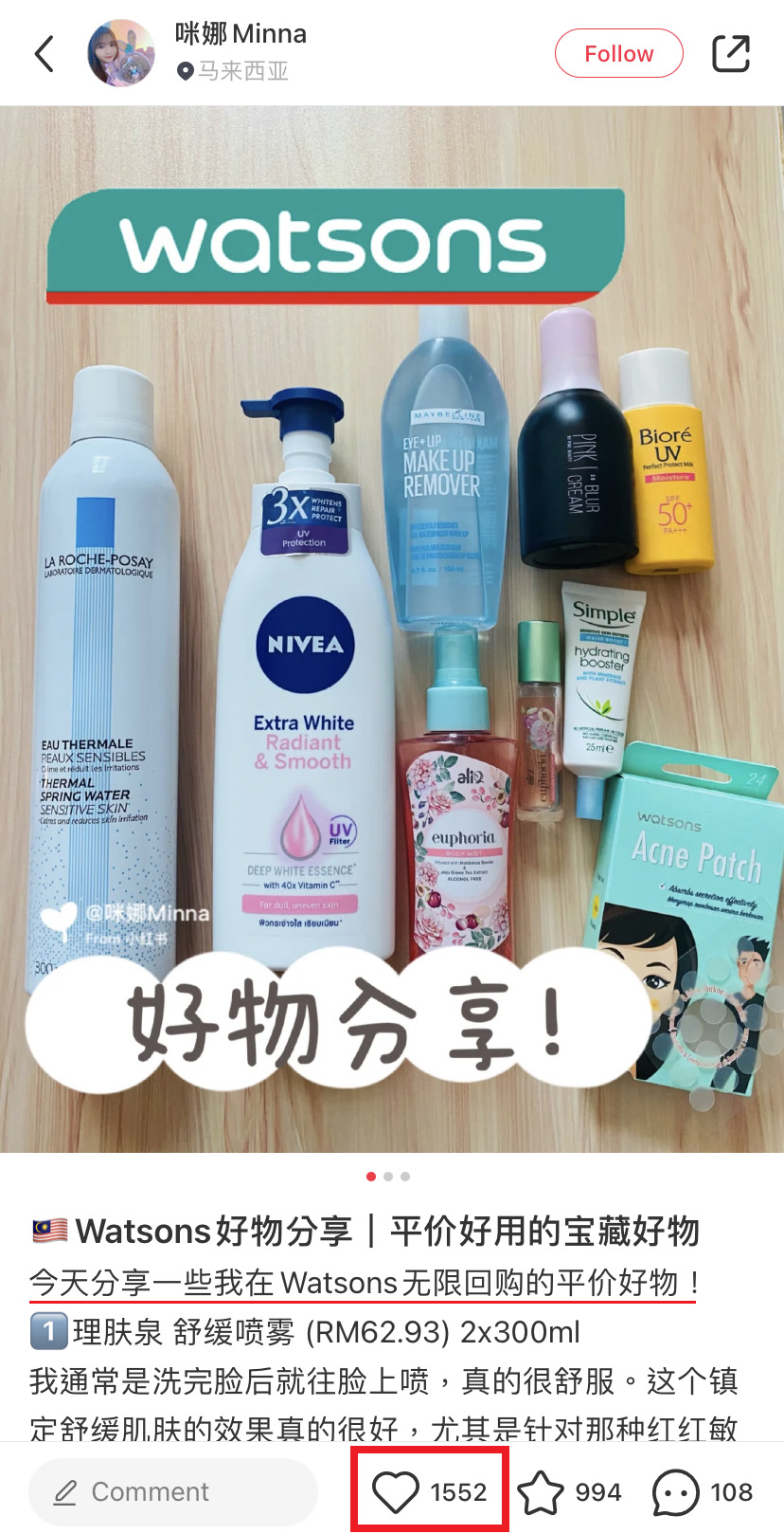 小红书就有一名大马博主分享了自己“种草”的10个 Watsons 平价好物,几乎每一个都是网友一致好评的。所以,谁说只有贵的东西才是好用的呢~