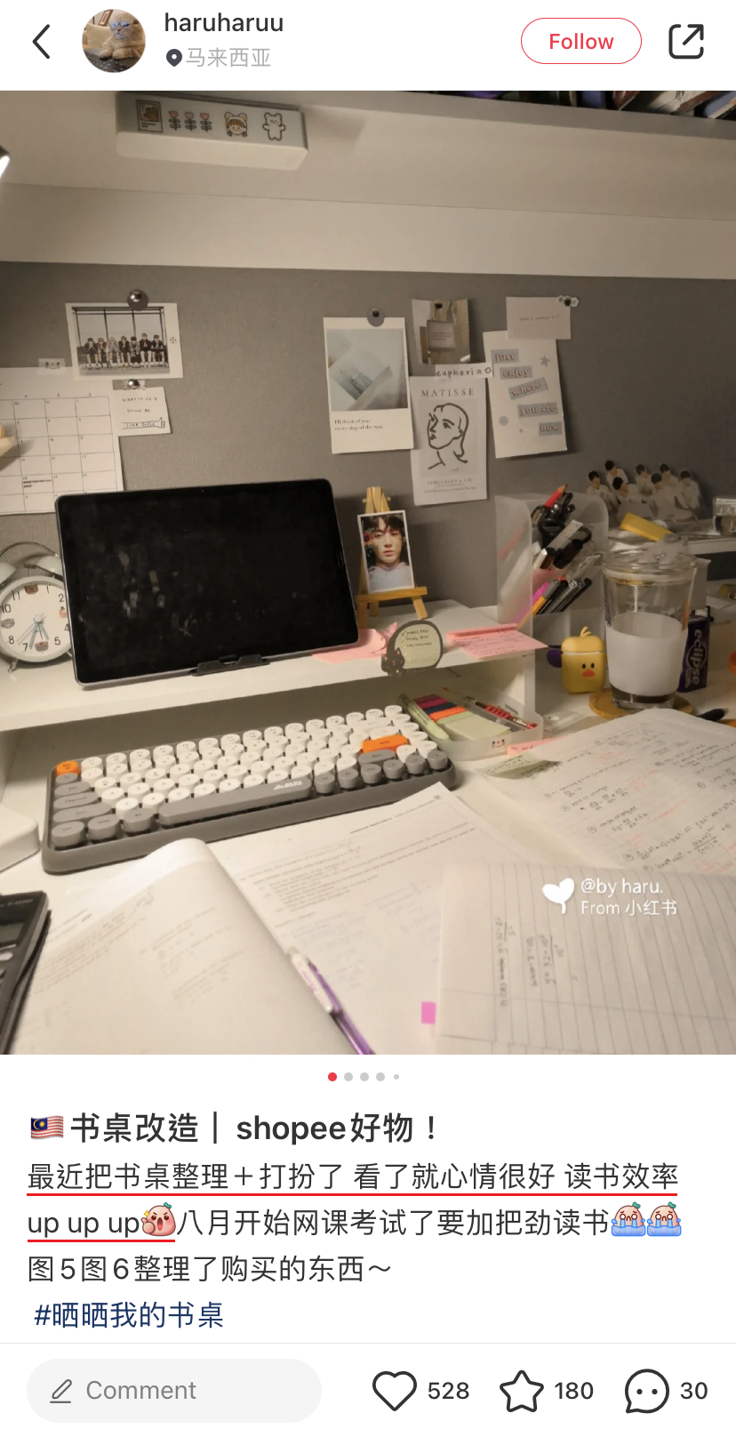 一名大马的小红书博主近日分享自己的书桌改造 ,全是在 Shopee 就能买到的好物哦!