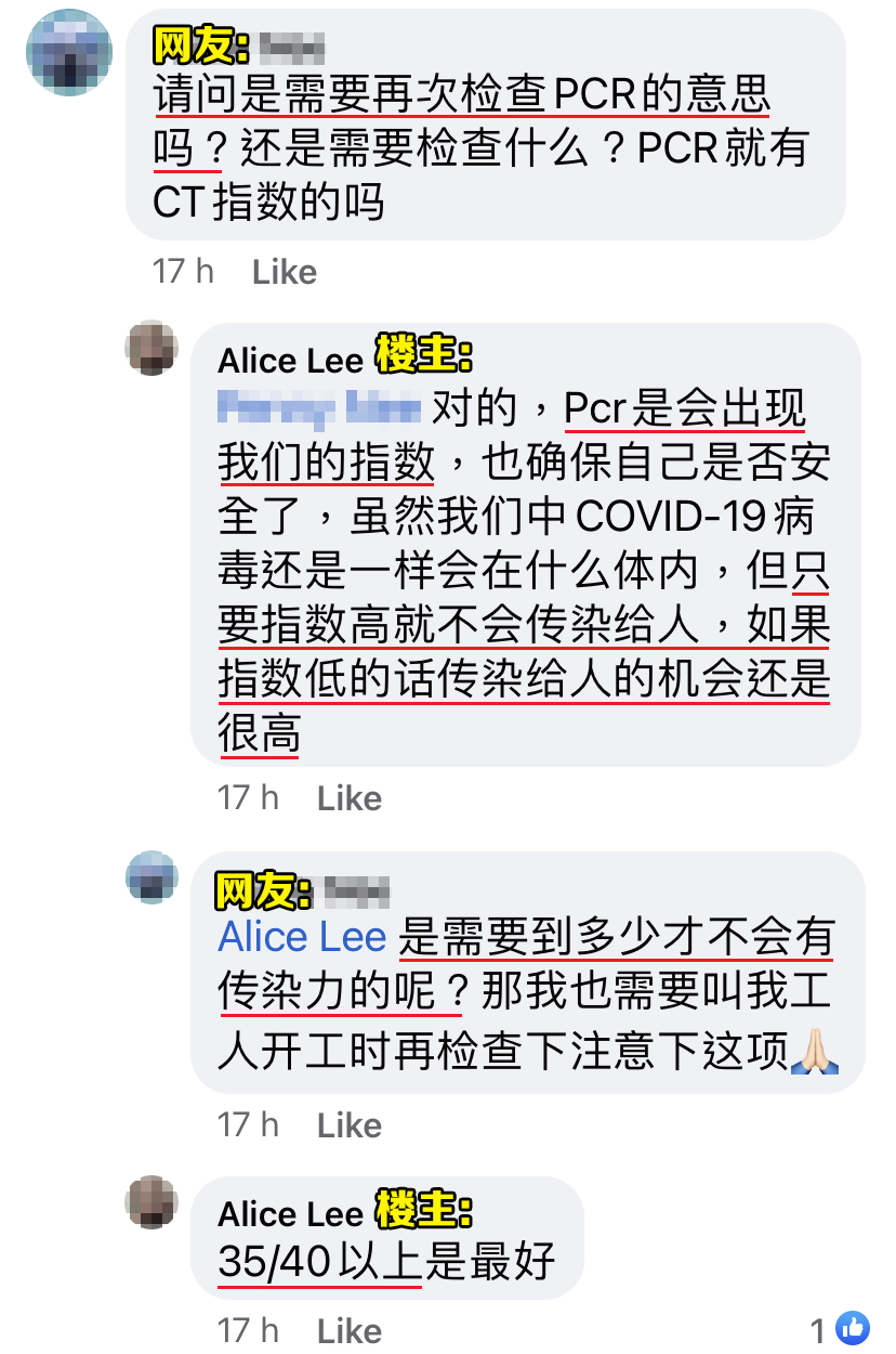 所以为了家人朋友安全起见,如果大家真的有感觉不舒服要验的话,请大家一定要做 PCR,看看自己的指数会比较好,或者找一些可以看见指数的都可以,现在指数很重要。