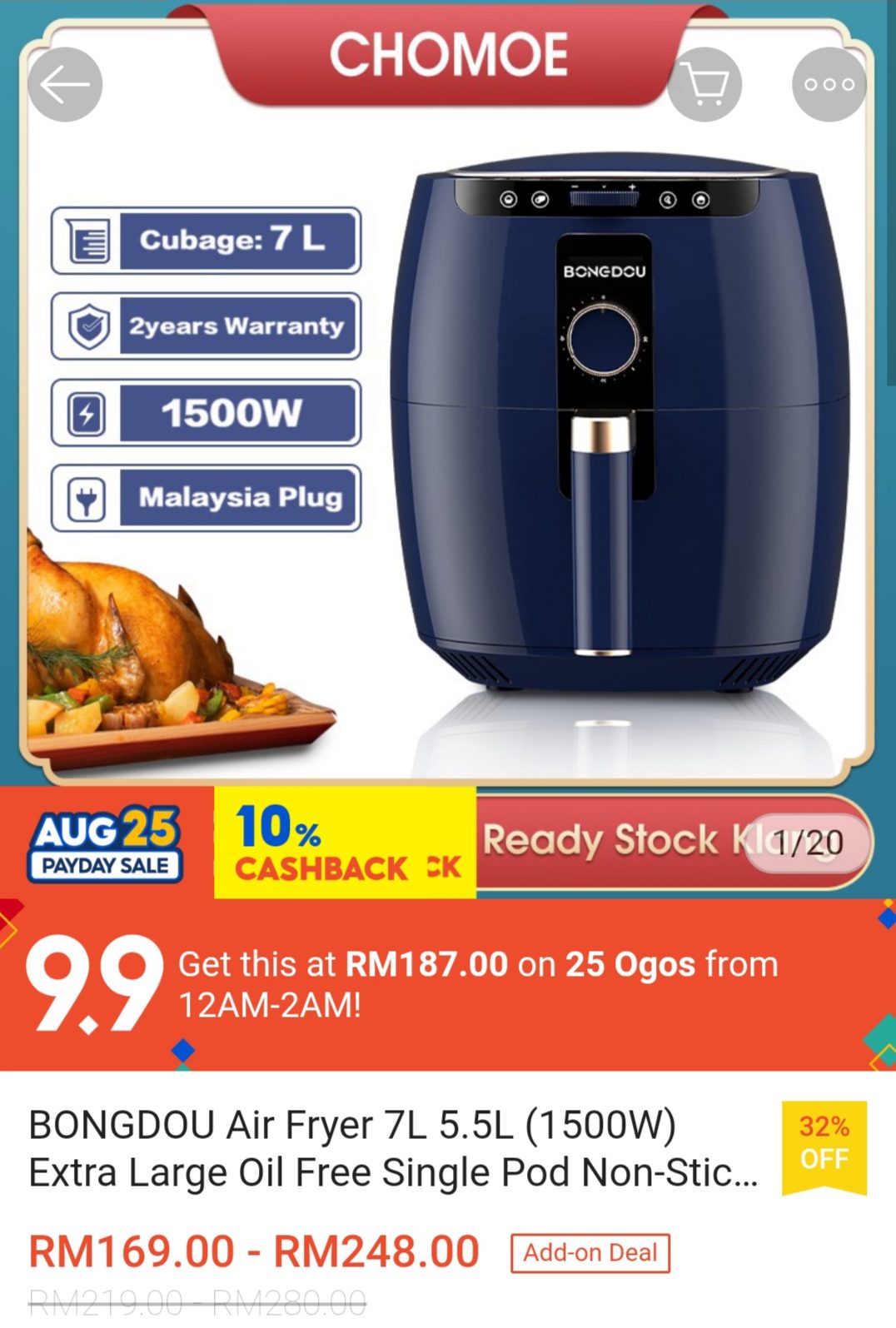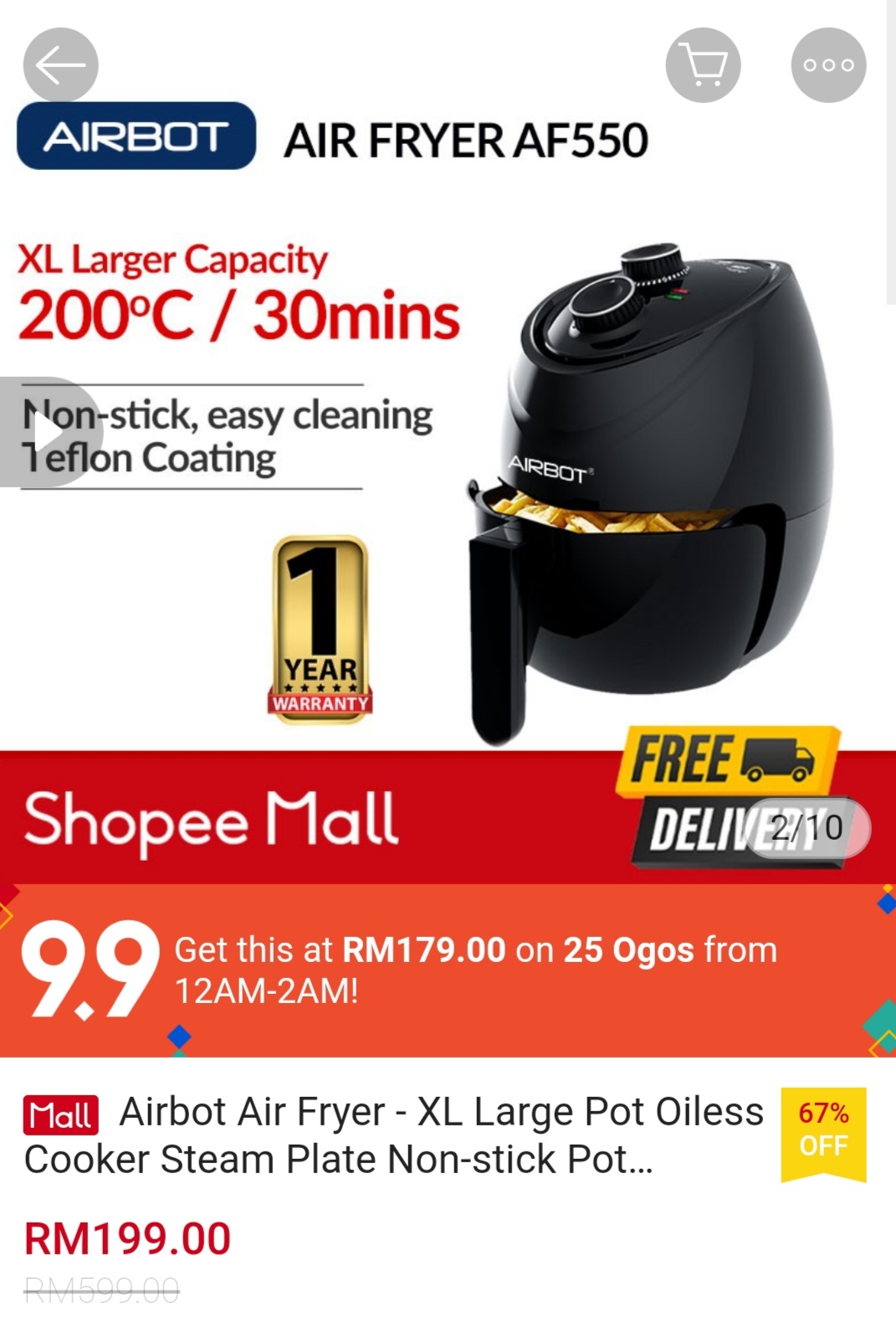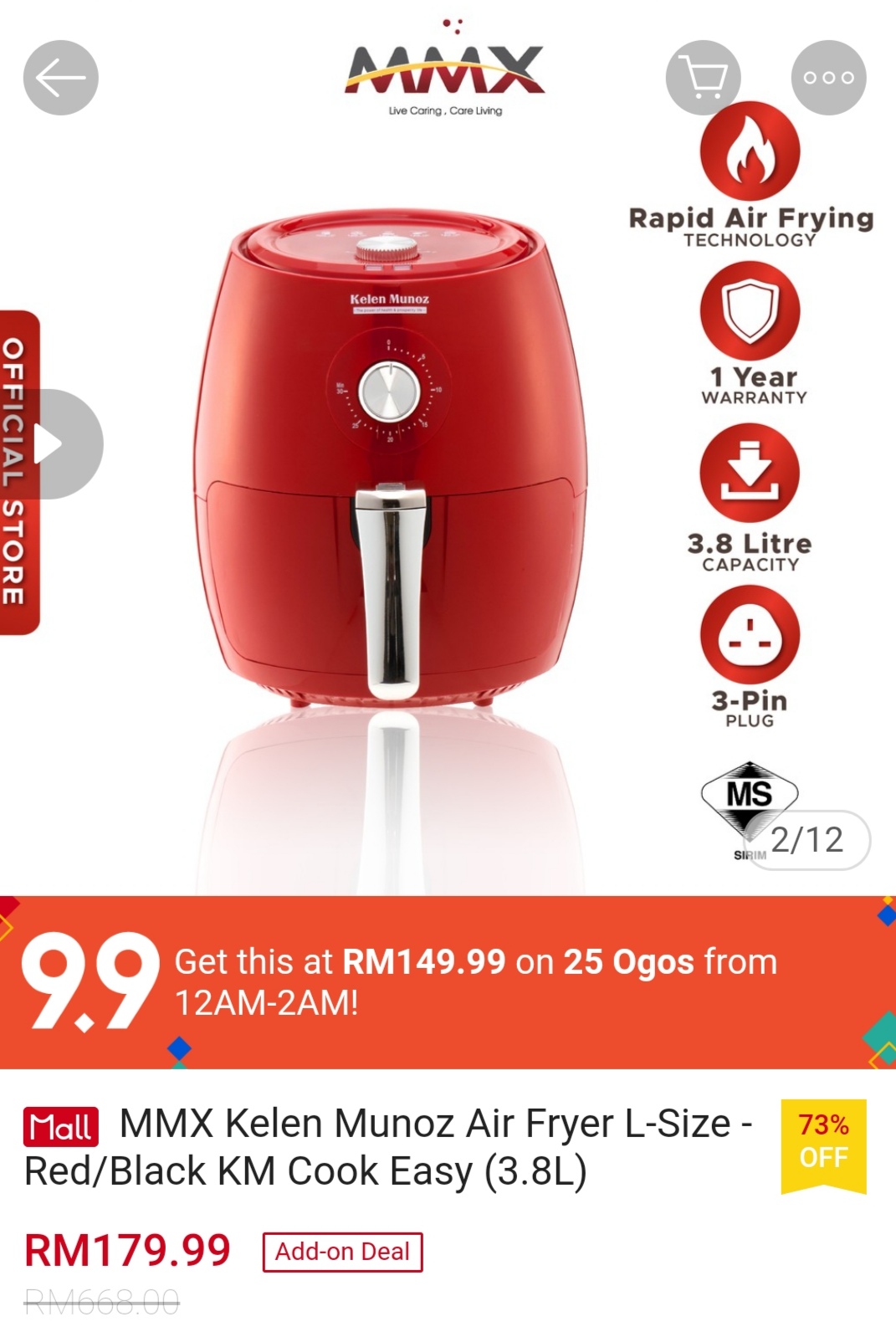 为了配合8月25日网购日的到来,各大品牌气炸锅推出大折扣,最低只需RM127.90!