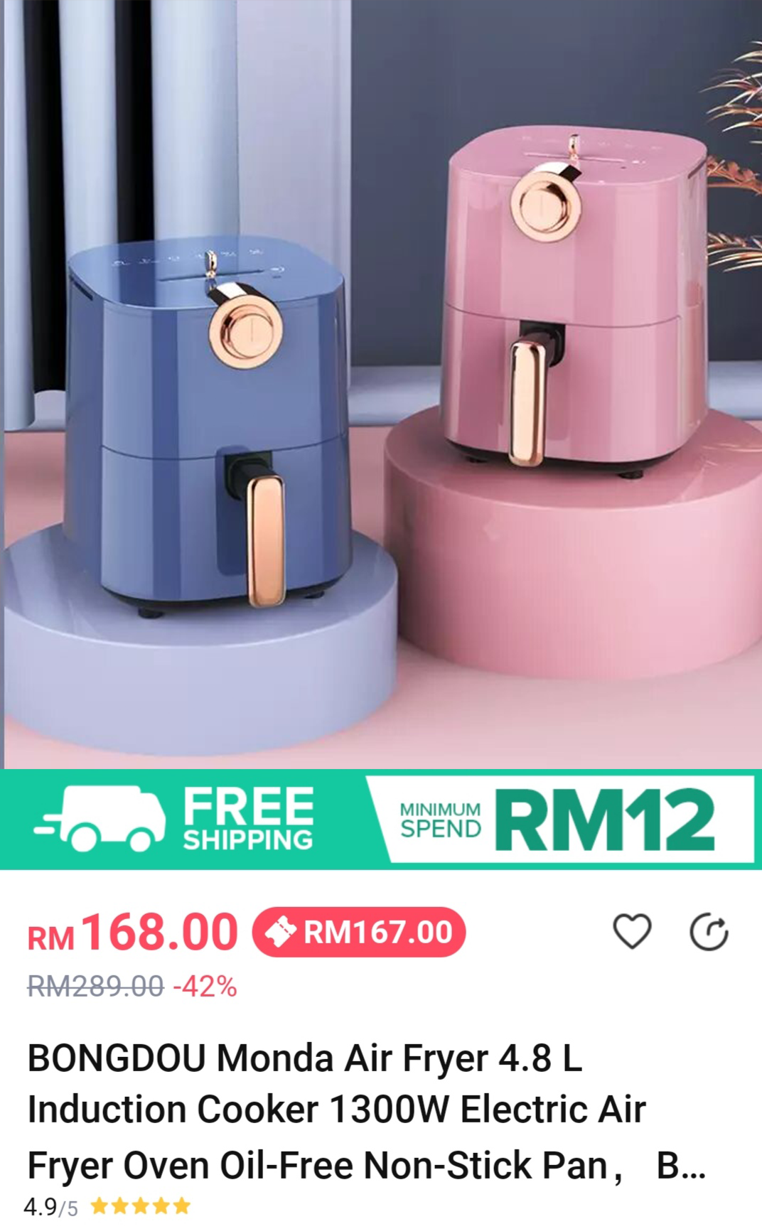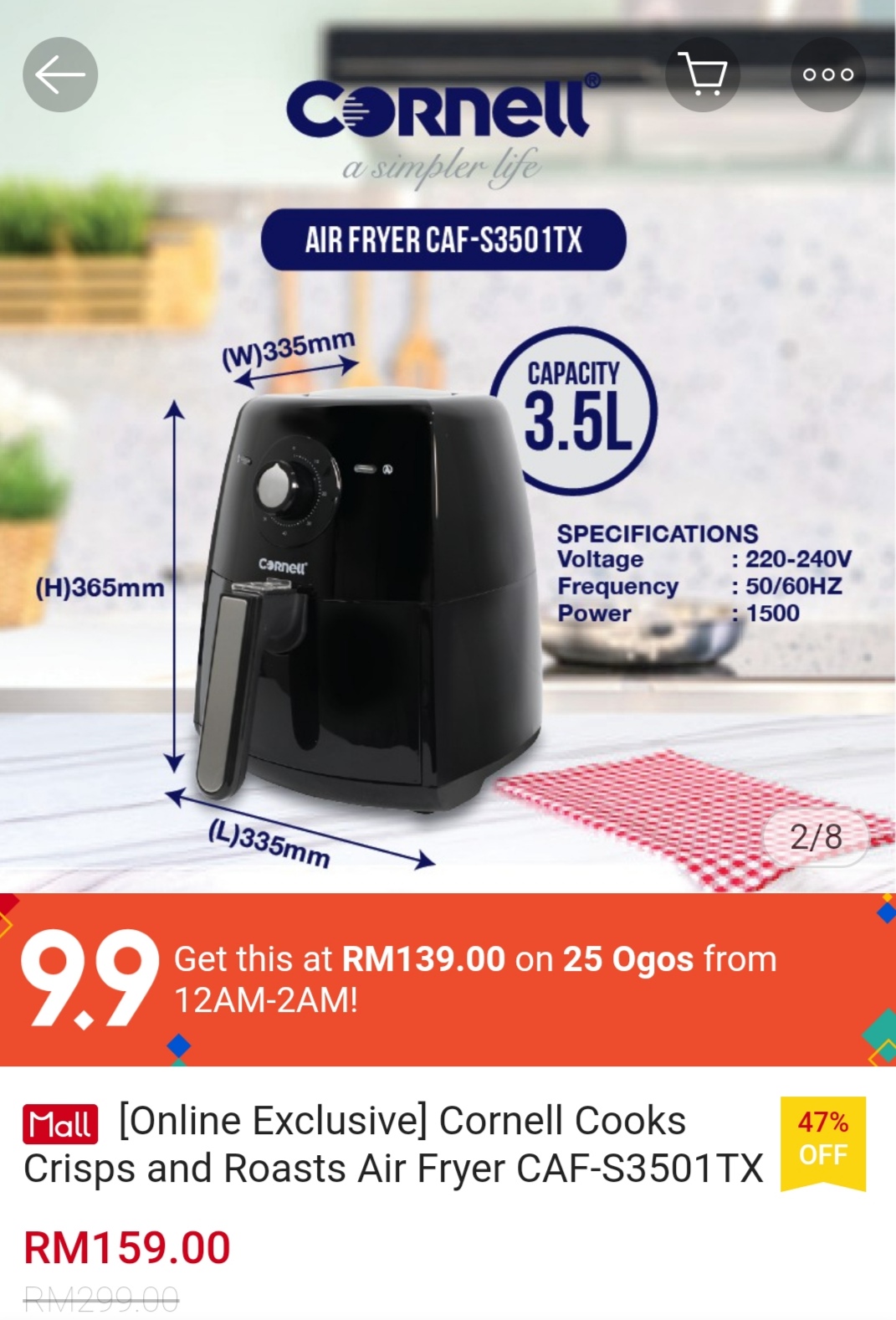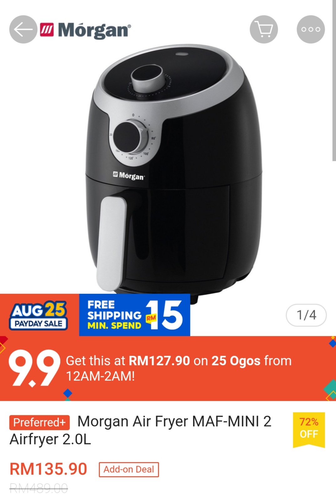 为了配合8月25日网购日的到来,各大品牌气炸锅推出大折扣,最低只需RM127.90!