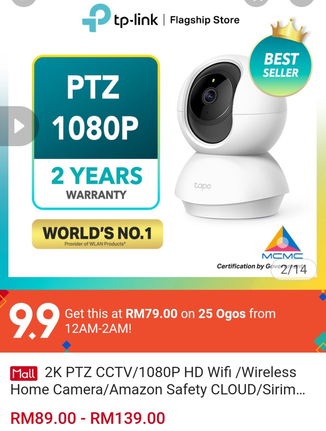- Lazada 价格:RM115(Tapo C200);购买【点击这里】| RM139(Tapo C210)购买【点击这里】| RM89(Tapo C100)购买【点击这里】| RM99(Tapo C110)购买【点击这里】