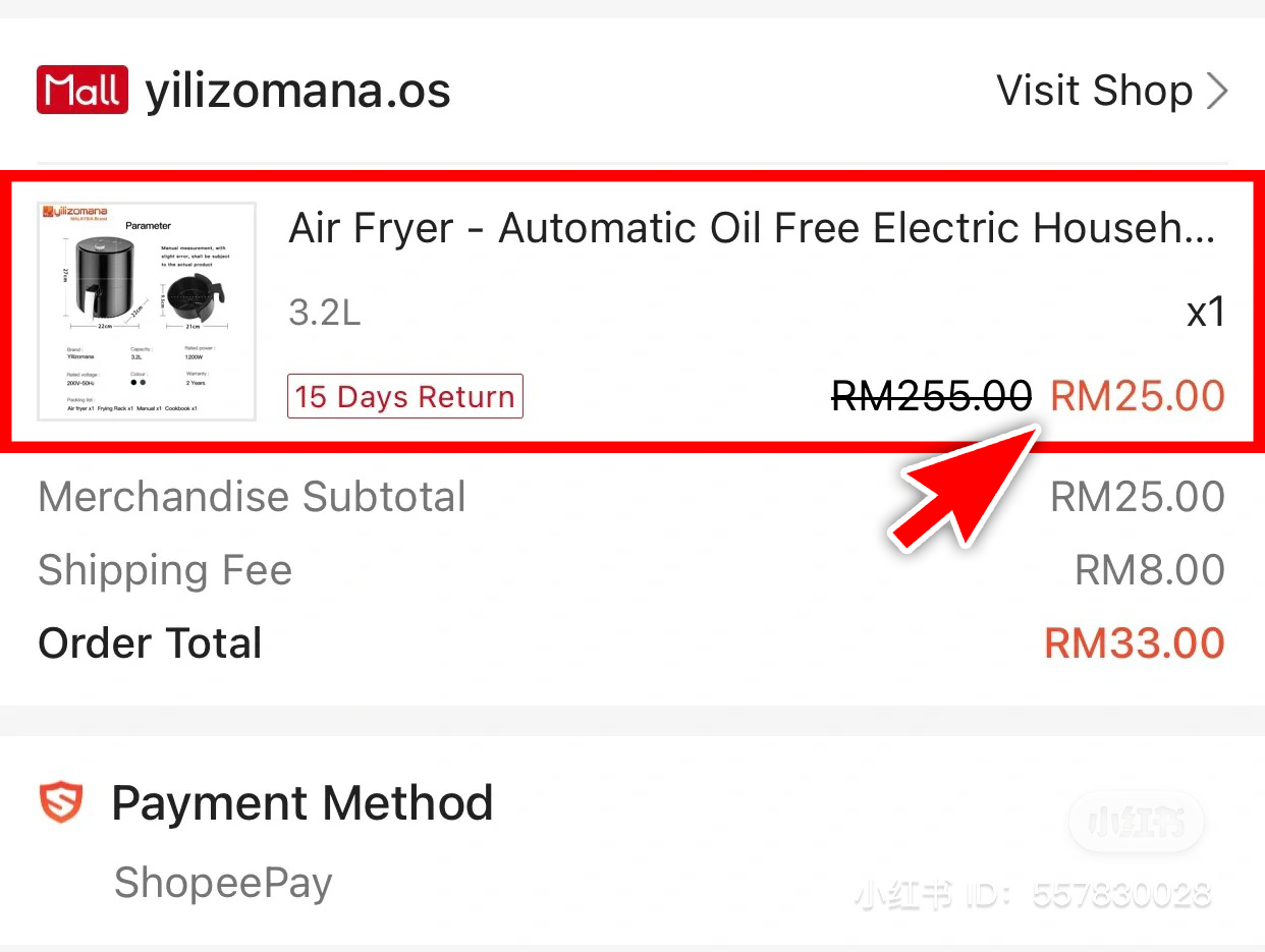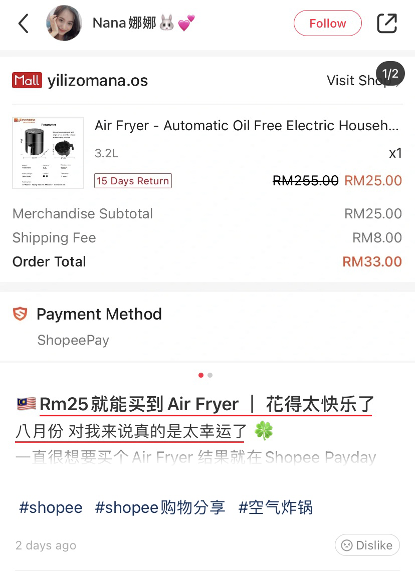 帖文 ② :原价RM255的气炸锅,RM25入手!