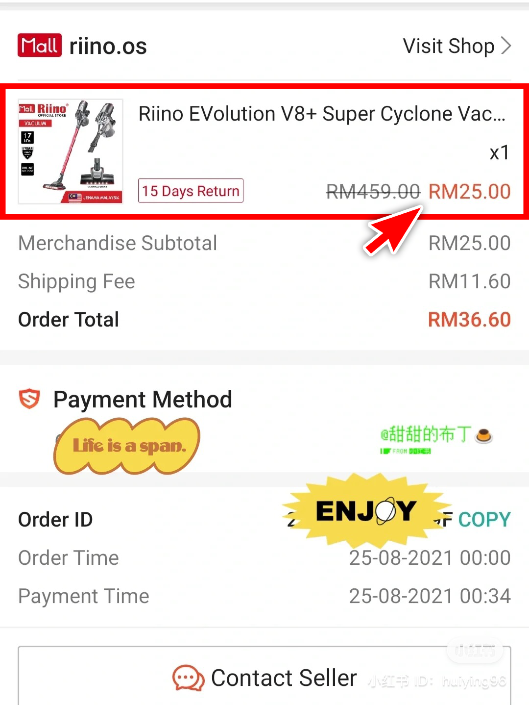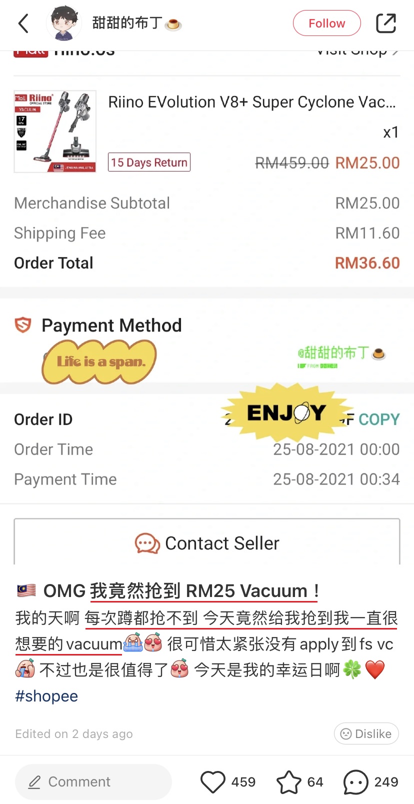▼ 虽然没有免运费,但RM36.60就能买到一台原价四百多块的吸尘器,还是超级值得的啦!