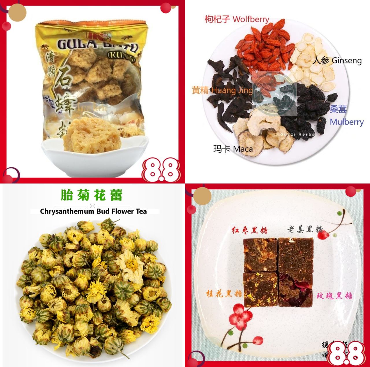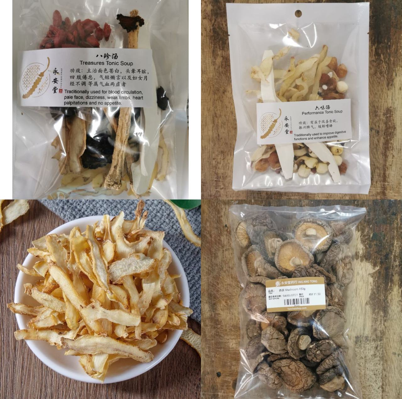 - 售卖:药材汤包、药材、红枣、花菇、干货等