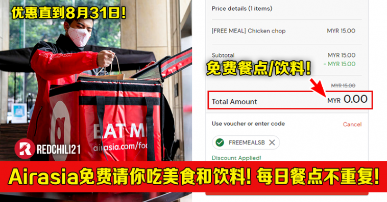 Airasia免费请你吃美食饮料!每日餐点不重复!优惠直到8月31日!