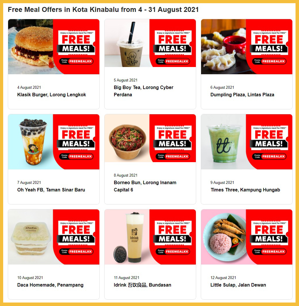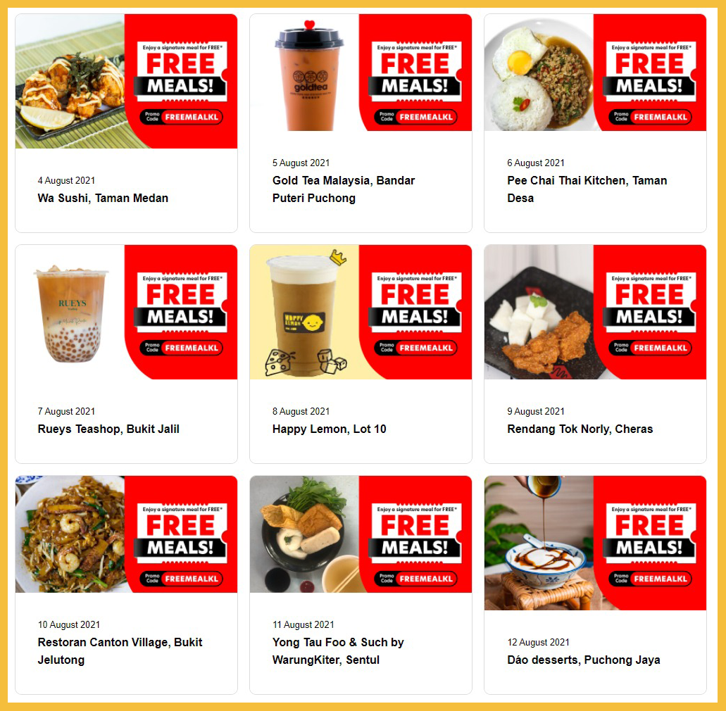 ※ 必须输入优惠代码【FREEMEALKL】才可享有免费餐点/饮料;订购点击这里