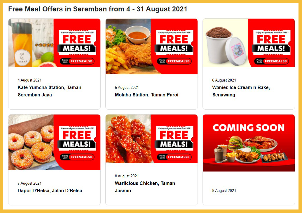 ※ 必须输入优惠代码【FREEMEALSB】才可享有免费餐点/饮料;订购点击这里