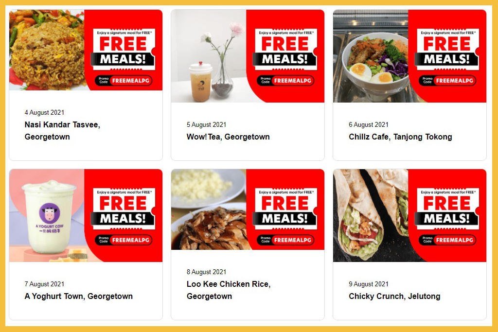 ※ 必须输入优惠代码【FREEMEALPG】才可享有免费餐点/饮料;订购点击这里