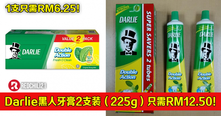 家里的牙膏是否还有存货?!如今2支装Darlie 黑人牙膏(225g)只需RM12.50! 平均一支只需RM6.25!