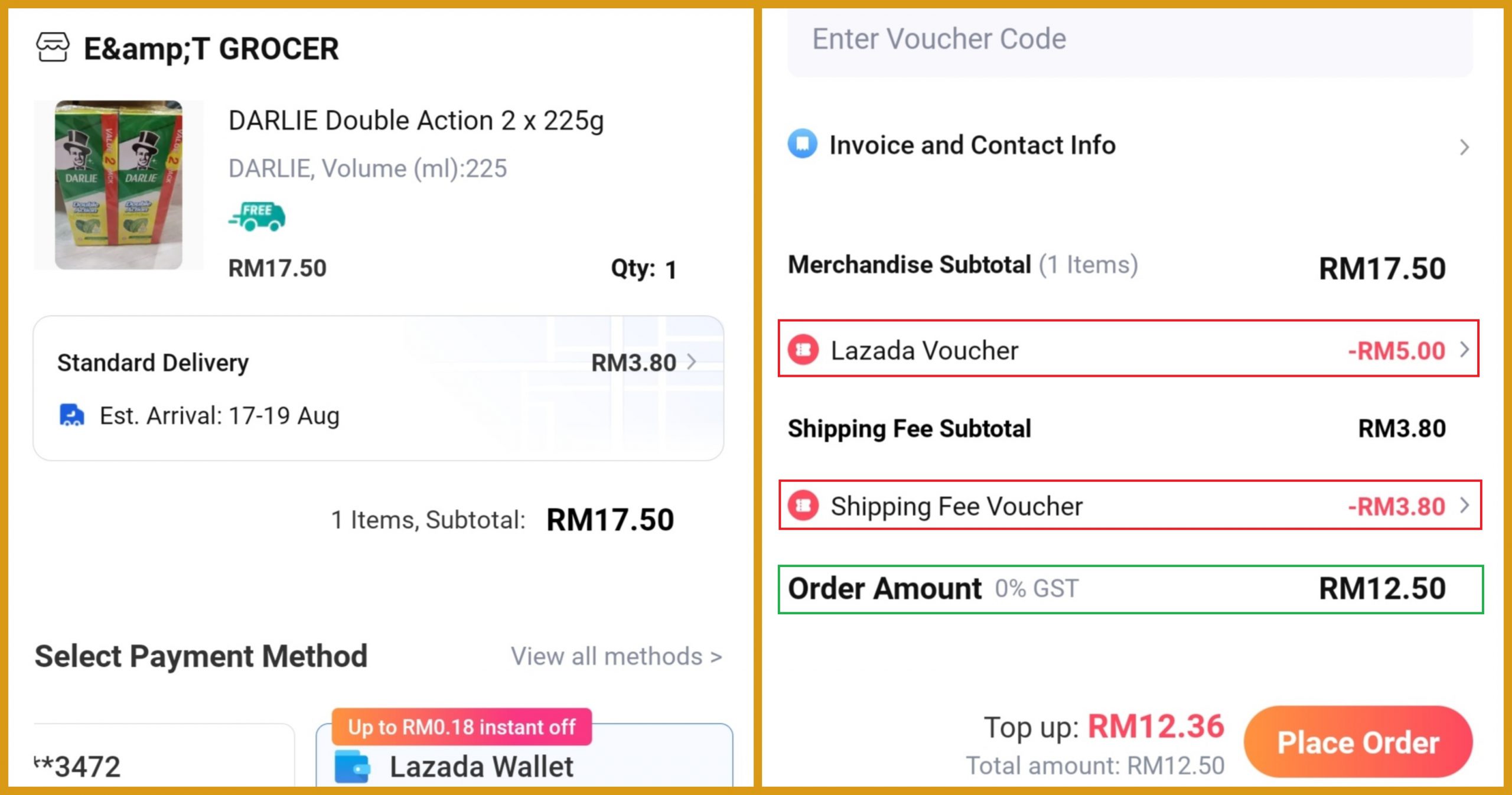 ① 首先打开Lazada App,领取RM5 折扣券和免邮券【点击这里】