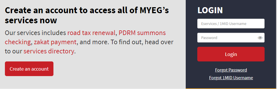 步骤1:浏览MyEG 官方网,注册一个账号(如果没有账号);登录MyEG 账号【点击这里】