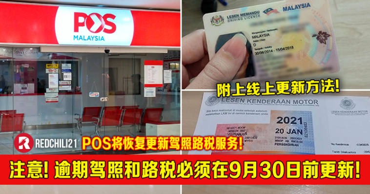 此外,全马POS 邮政局将会在8月9日起恢复更新驾照和路税的服务!或者你也可通过JPJ 柜台更新驾照和路税,但必须先进行预约!
