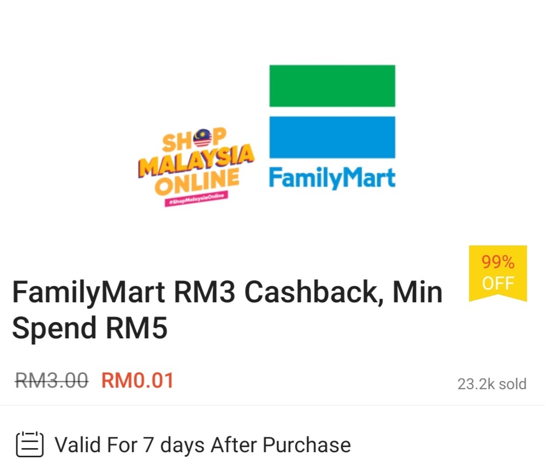 ▼ ② FamilyMart – 消费满RM5 可获RM3 现金回扣;购买【点击这里】