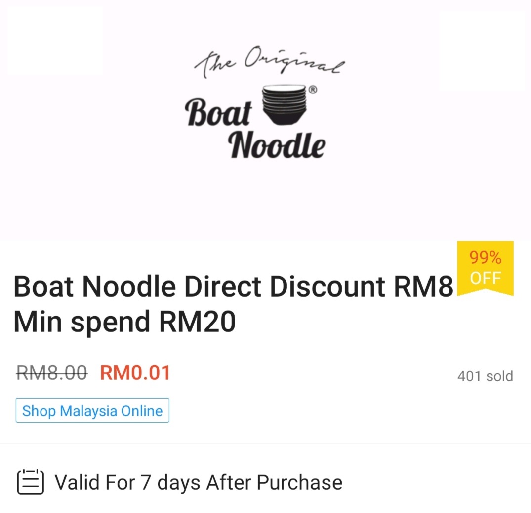 ▼ ⑥ Boat Noodle – 消费满RM20 可享有RM8 现金回扣;购买【点击这里】