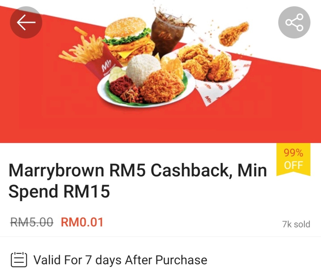▼ ⑮ Marrybrown – 消费满RM15 可享有RM5 现金回扣;购买【点击这里】