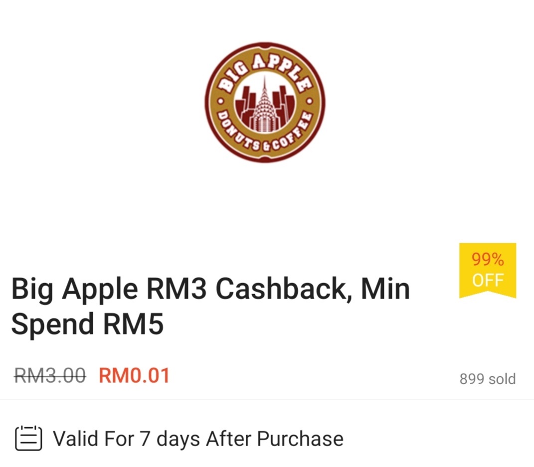 ▼ ⑩ Big Apple – 消费满RM5 可享有RM3 现金回扣;购买【点击这里】