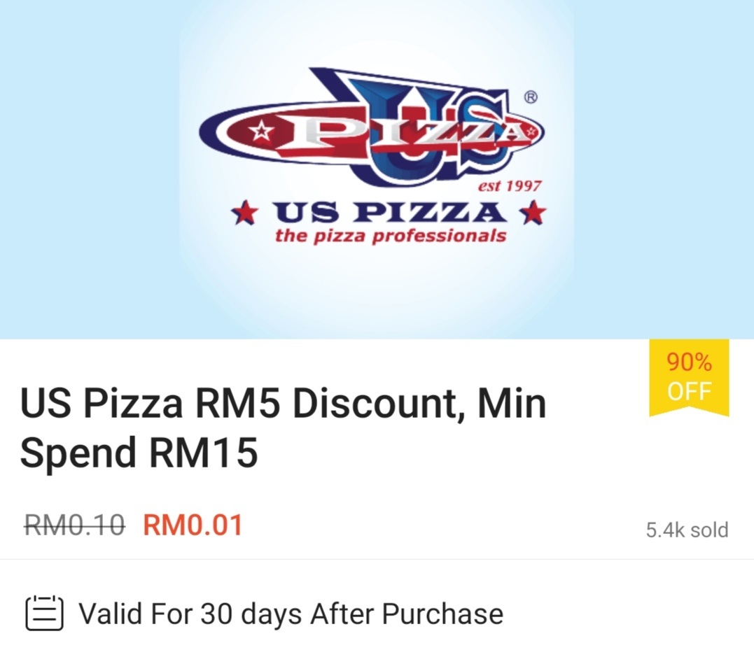 ▼ ⑧ US Pizza – 消费满RM15 可享有RM5 现金回扣;购买【点击这里】