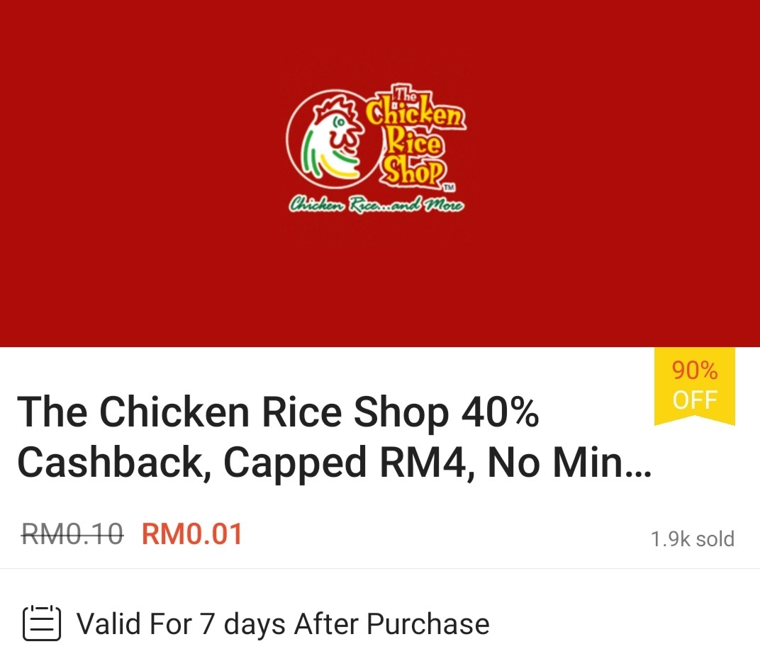 ▼ ⑦ The Chicken Rice Shop – 40%现金回扣(最高折扣RM4 / 无需最低消费);购买【点击这里】