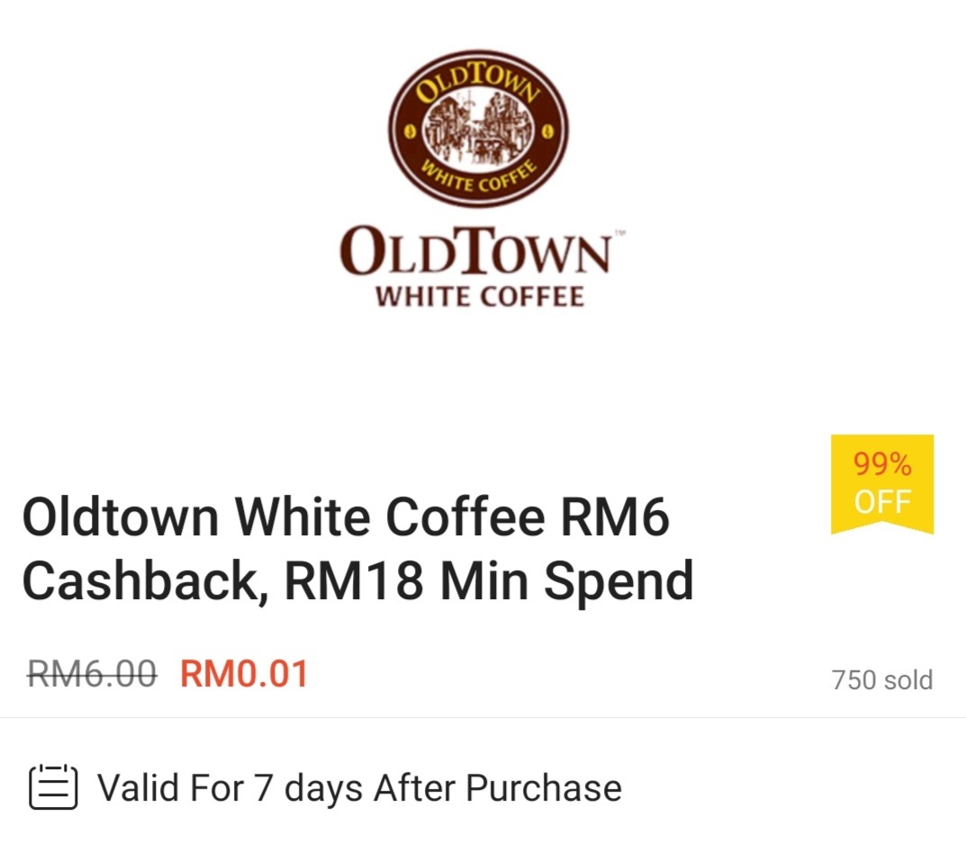 ▼ ③ Oldtown White Coffee – 消费满RM18 可获RM6 现金回扣;购买【点击这里】